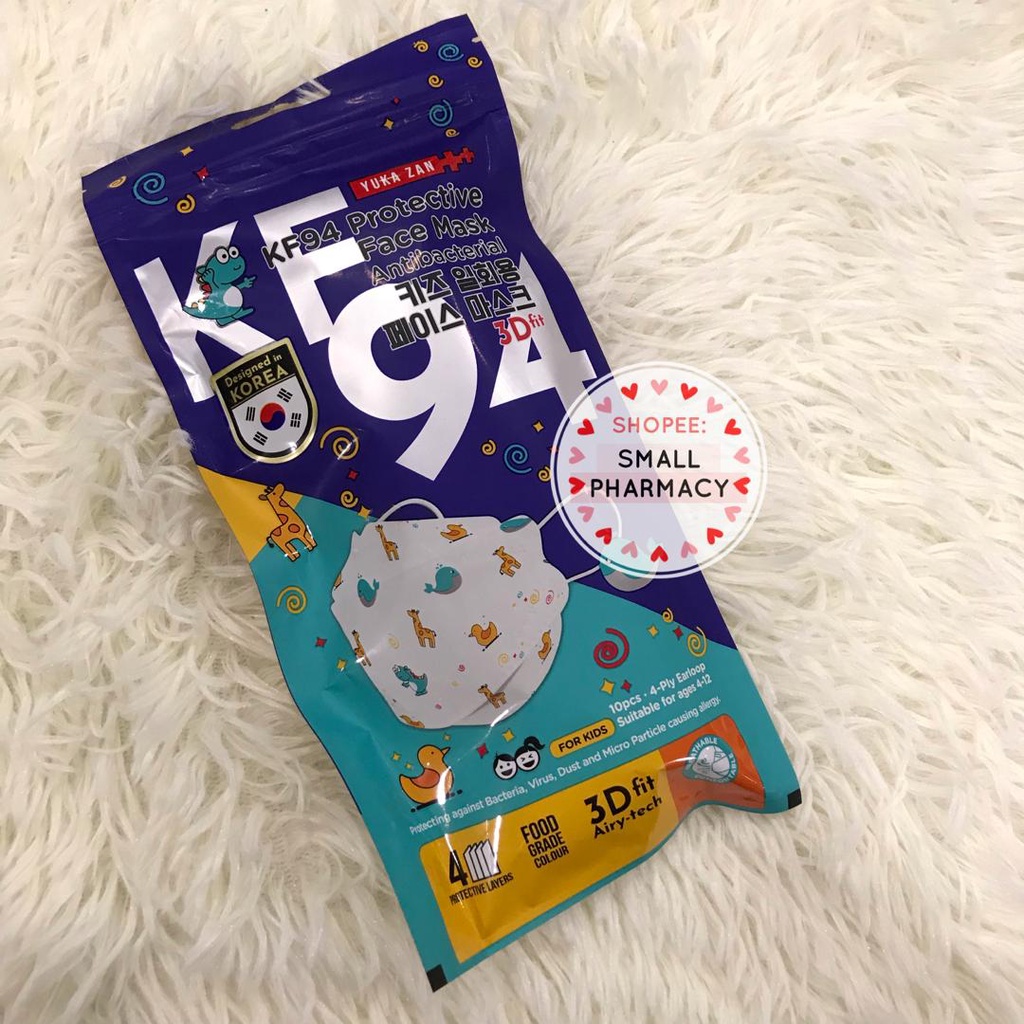 YUKAZAN KF94 PROTECTIVE FACE MASK ANTIBACTERIAL 3D FIT 10s - ANIMAL KINGDOM / SKY BLUE + COTTON WHITE