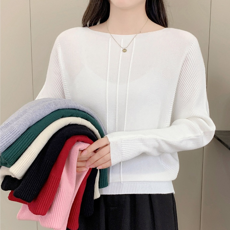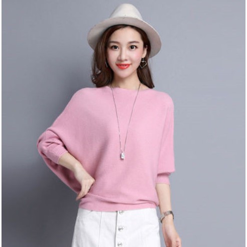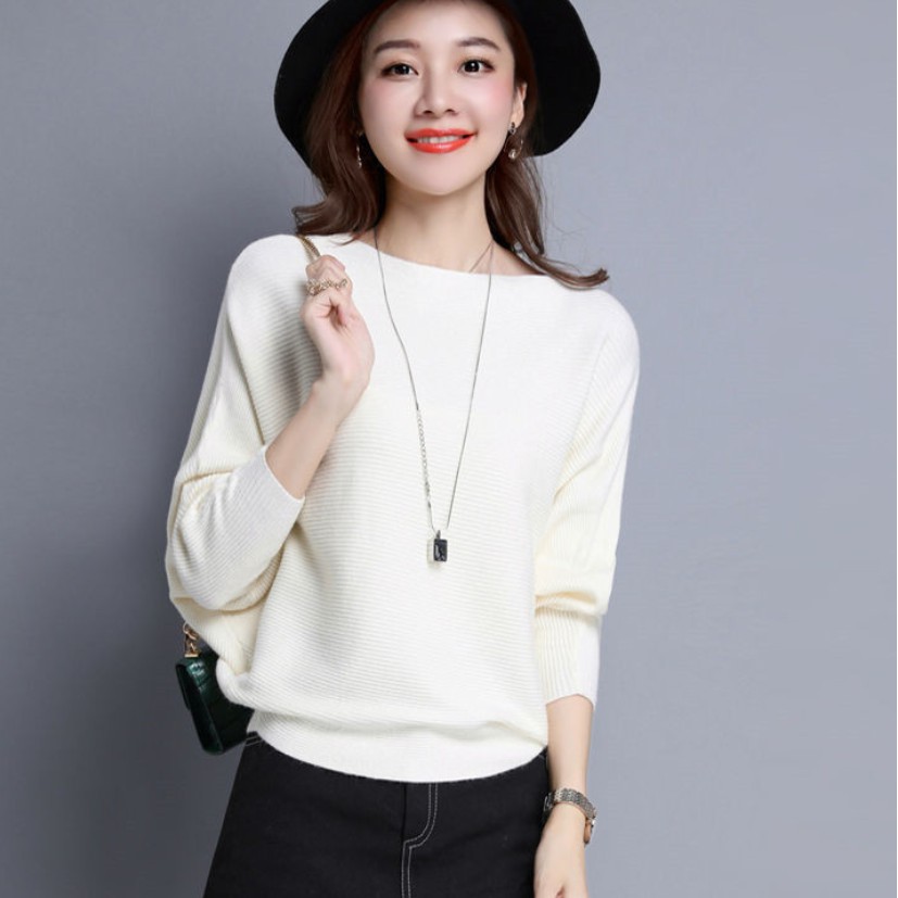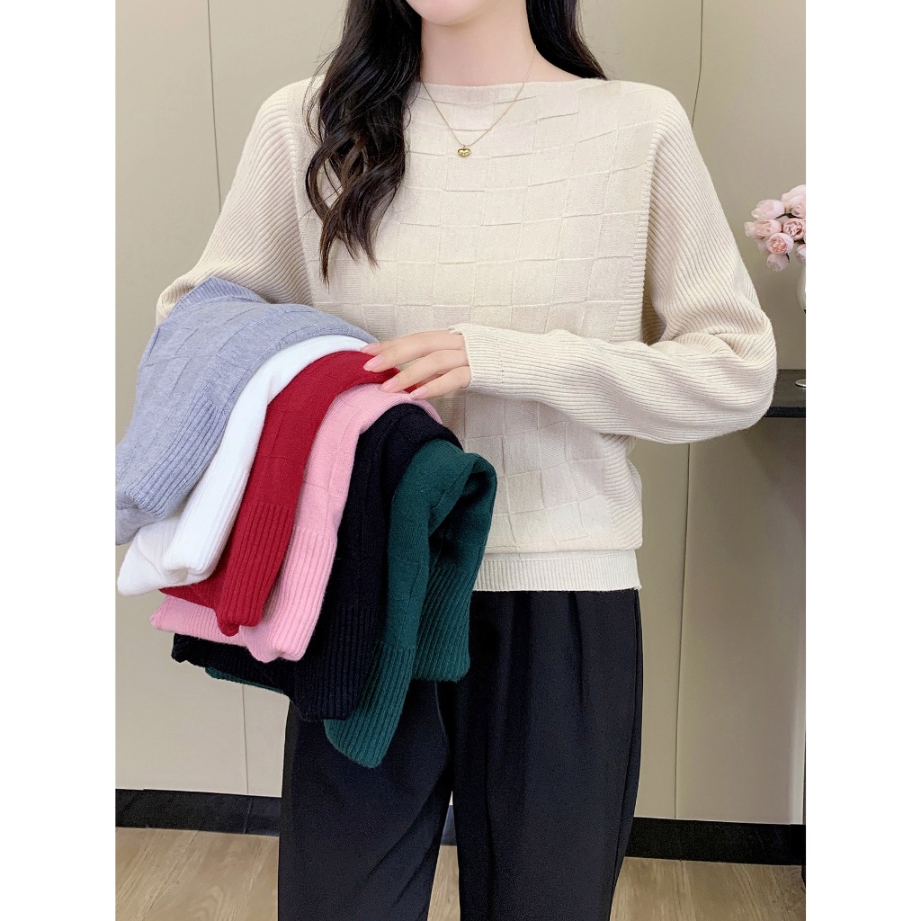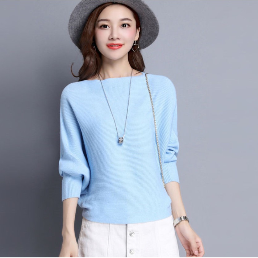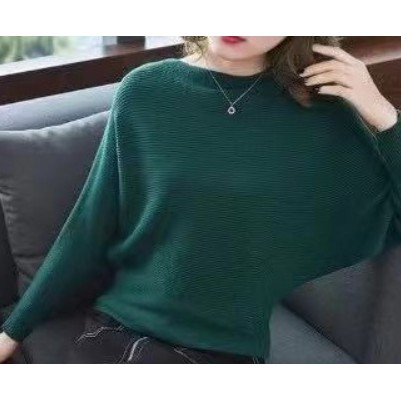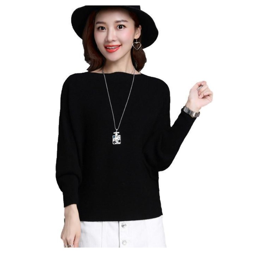 【READY STOCK】ST245 Women's Bat Sleeve Sweater Loose Solid Color Single Collar Sweater Knitted Top