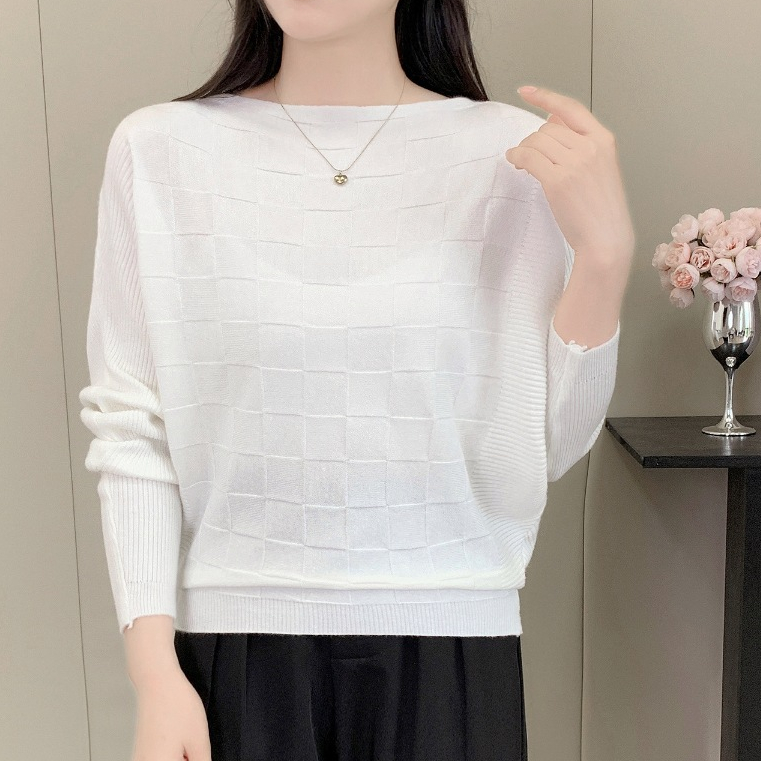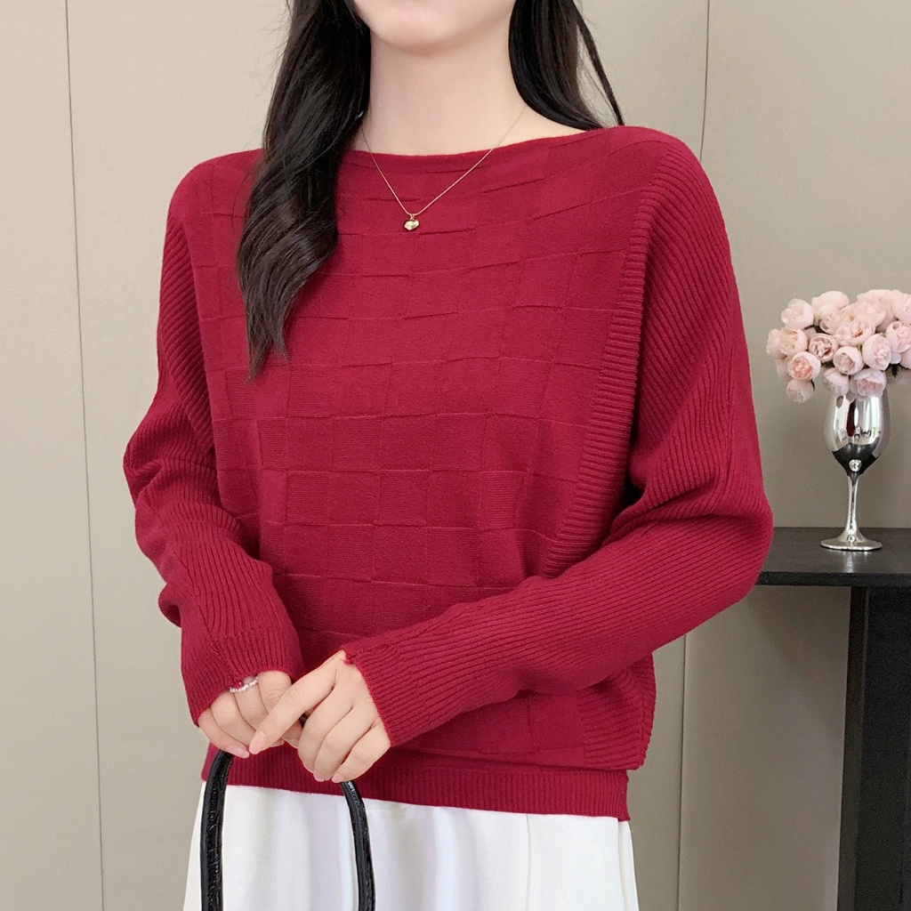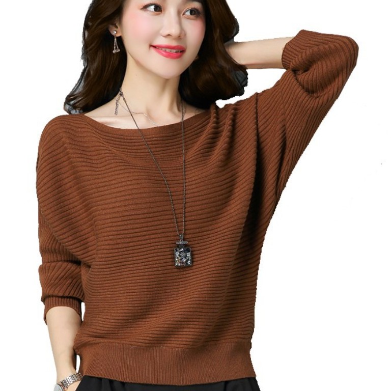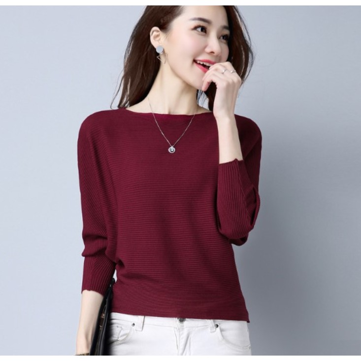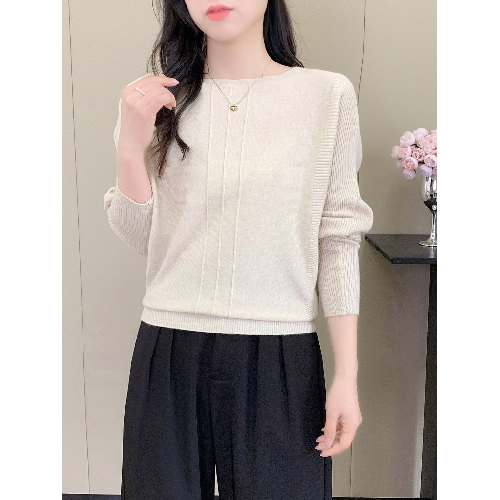 【READY STOCK】ST245 Women's Bat Sleeve Sweater Loose Solid Color Single Collar Sweater Knitted Top