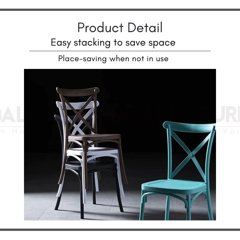 Furnimall Cross Back Cafe Chair Kerusi Kafe PP Chair Plastic Chair Curved back Chair Outdoor Dining Chair Kerusi Makan