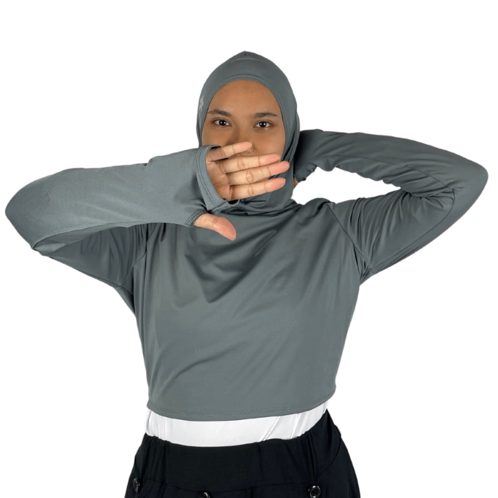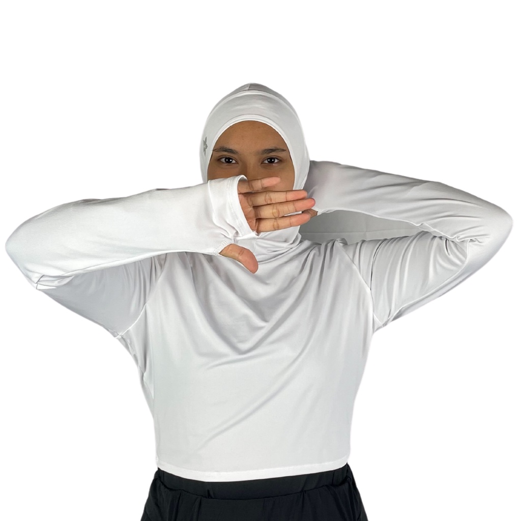 Tudung Sukan dan Baju Lengan Panjang dalam Satu, Baju Pendek Berlengan Panjang Bertudung