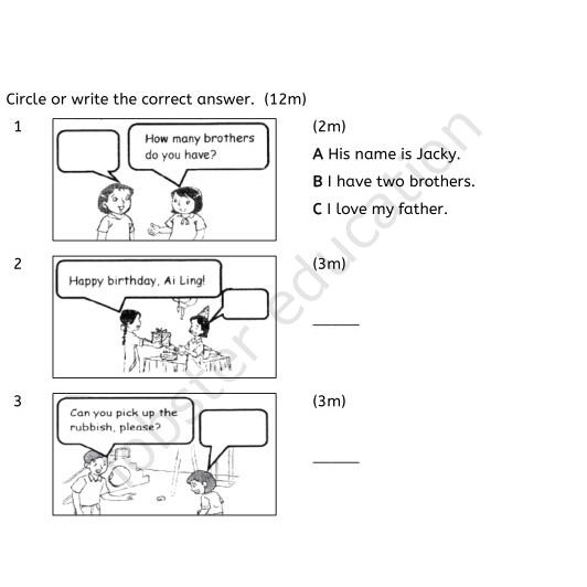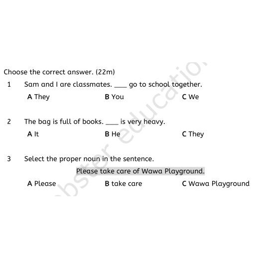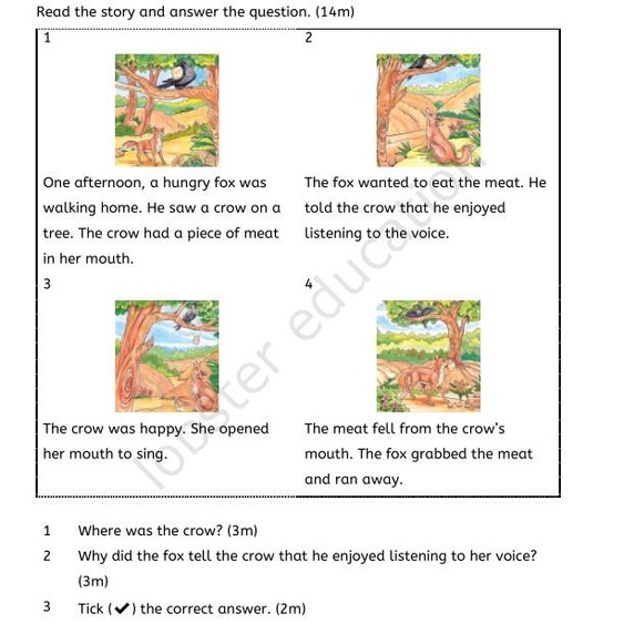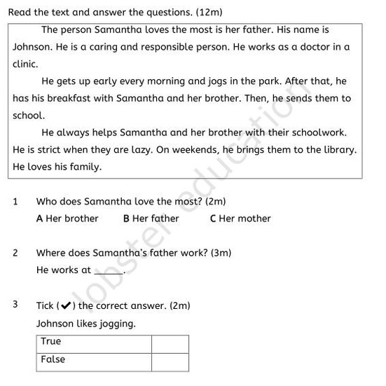 Year 3 - English Comprehension Paper - 考卷 - 三年级英文理解