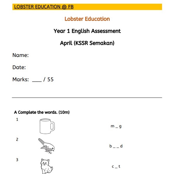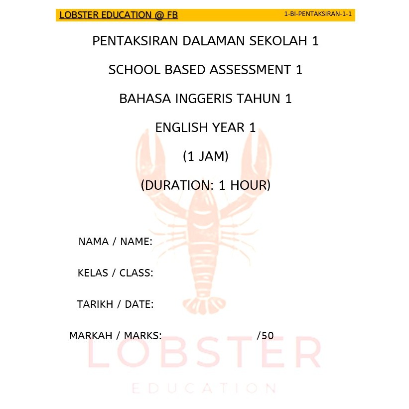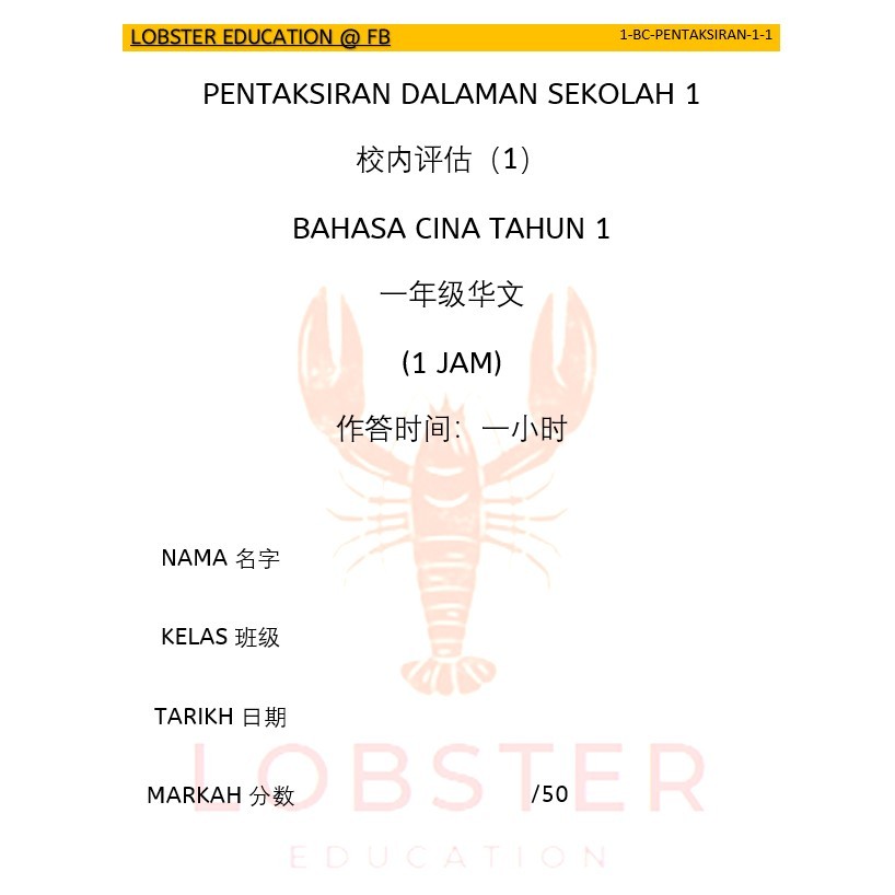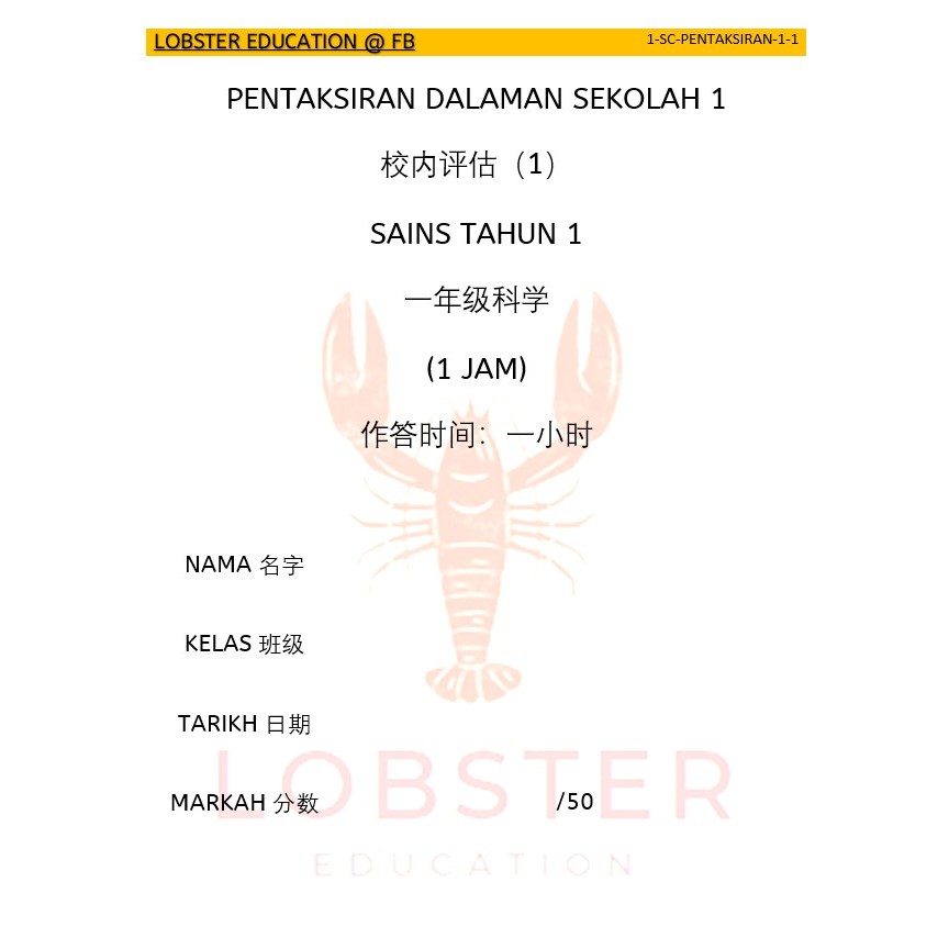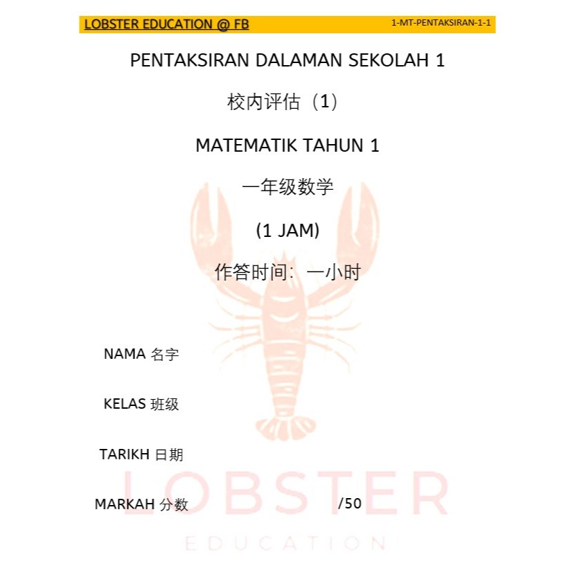 KSSR SEMAKAN 马来西亚小学 上半年 一年级评估 1