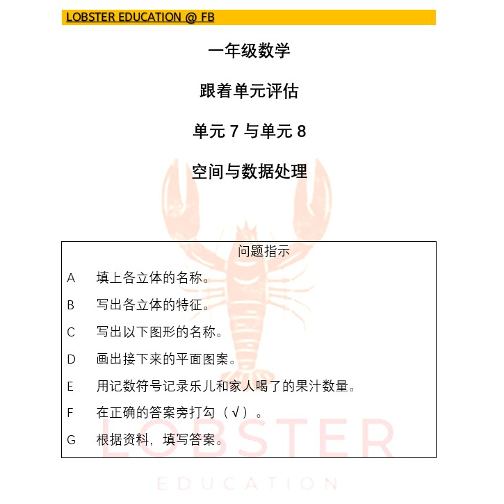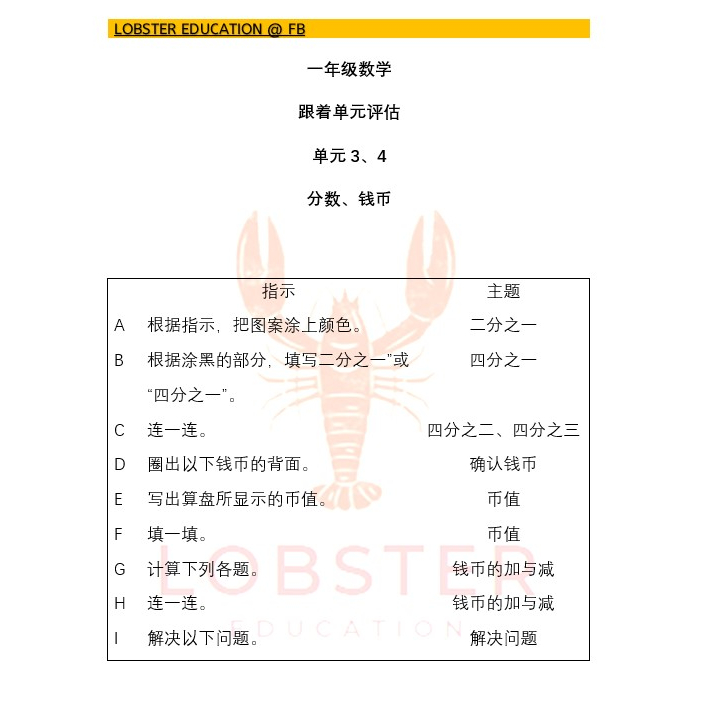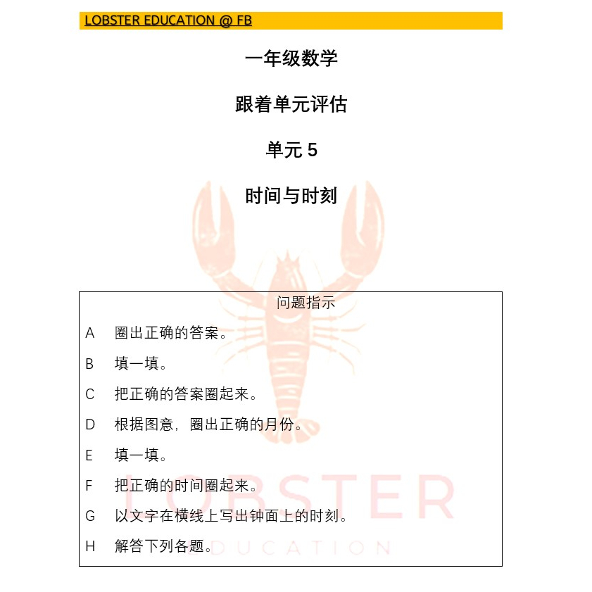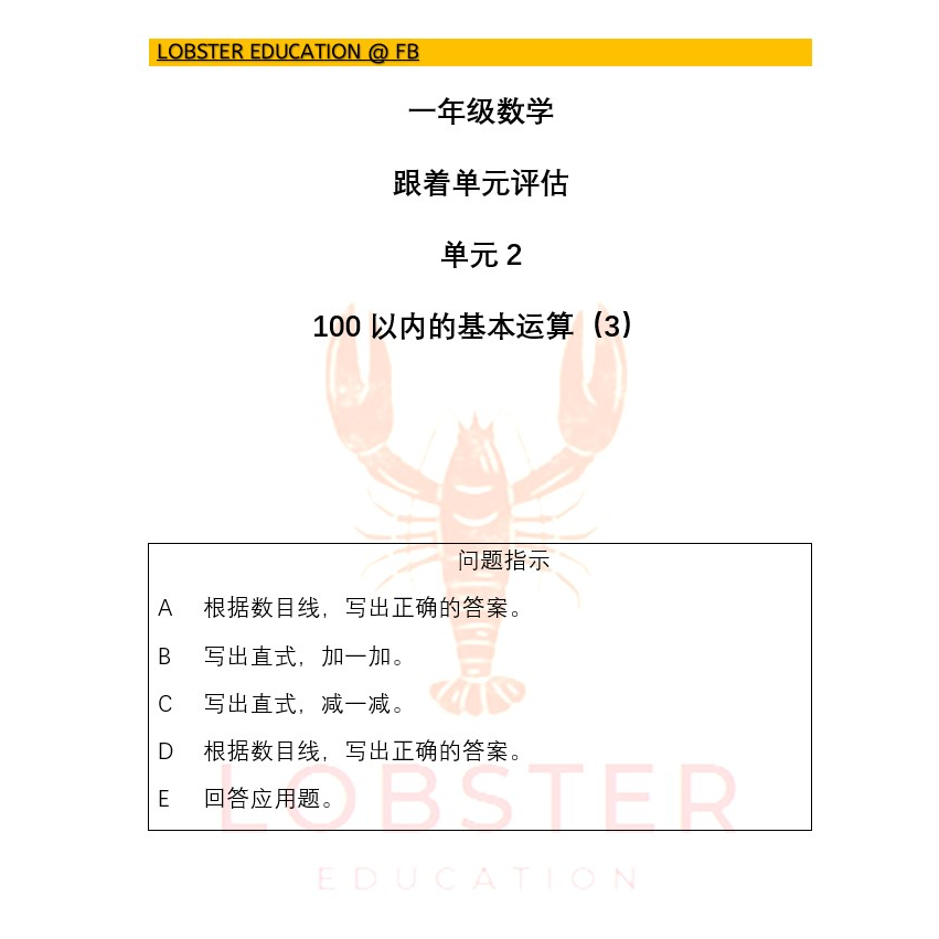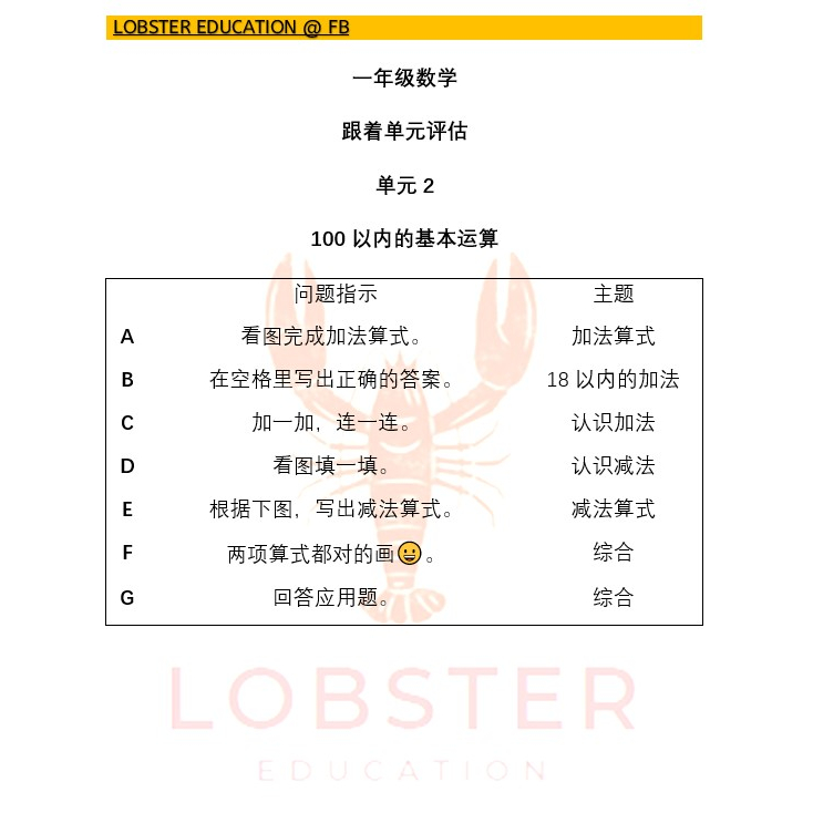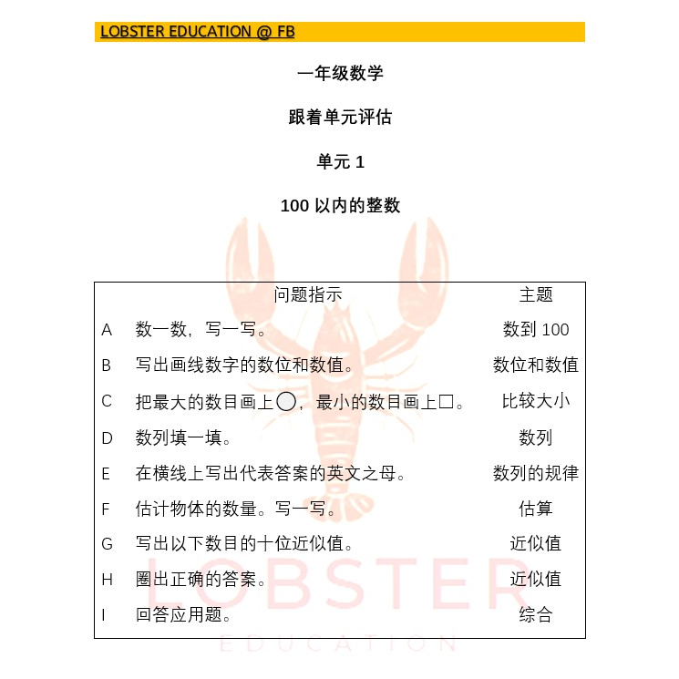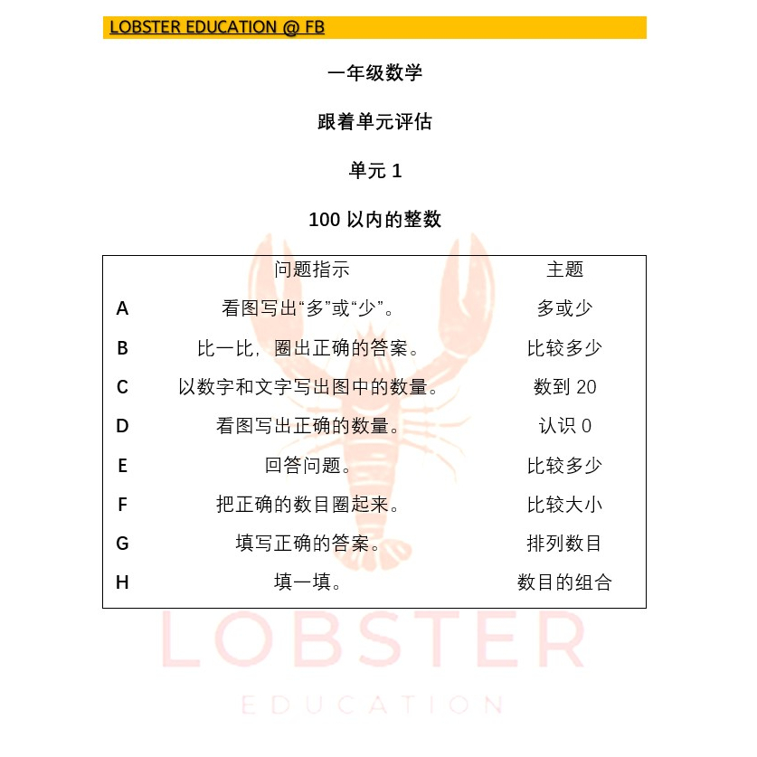 一年级数学 跟着单元评估 - SJKC Year 1 Mathematics Unit Assessment - SJKC Tahun 1 Matematik Penilaian Unit