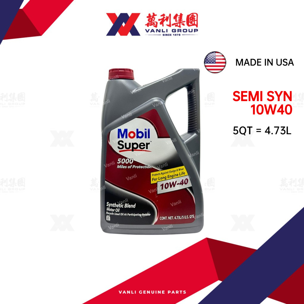 Mobil Super 5000 Semi Synthetic Engine Oil 10W40 API SN+ ( 5 Quarts = 4.73 Liters ) - 124409