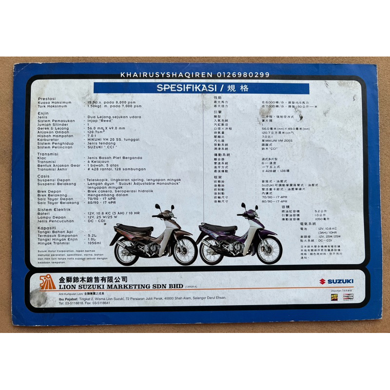 Suzuki RGV120 Original Printed Brochure / Pamphlet USED