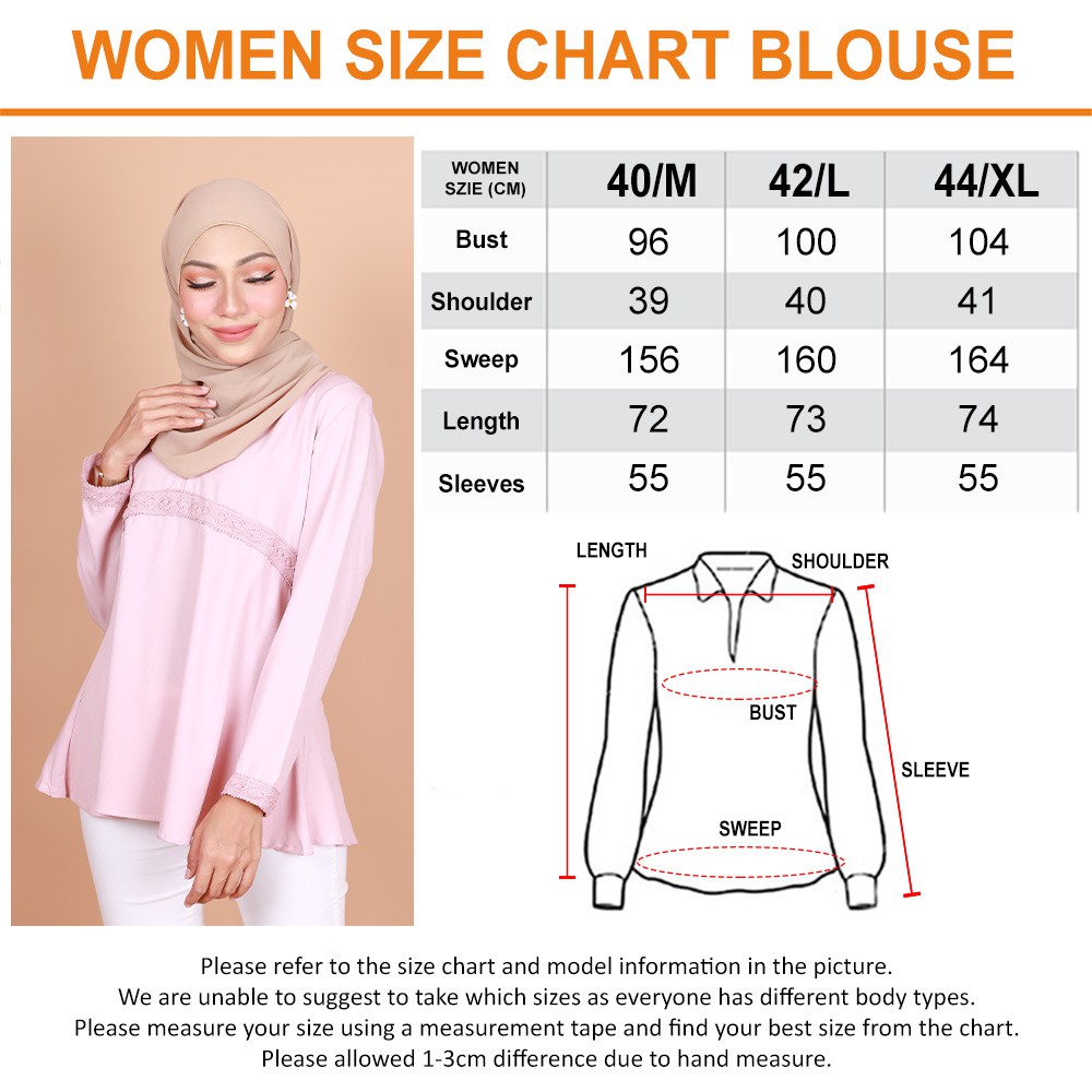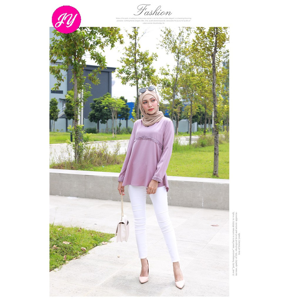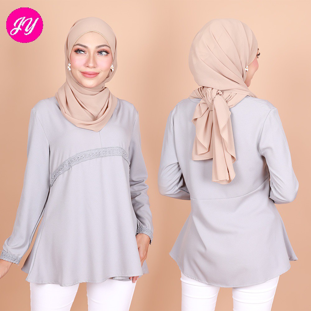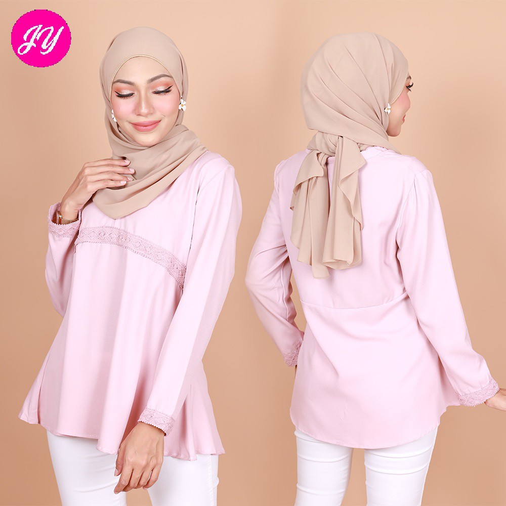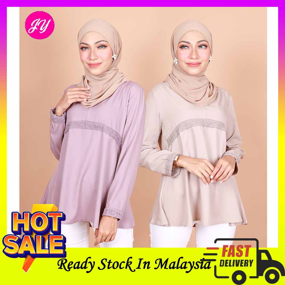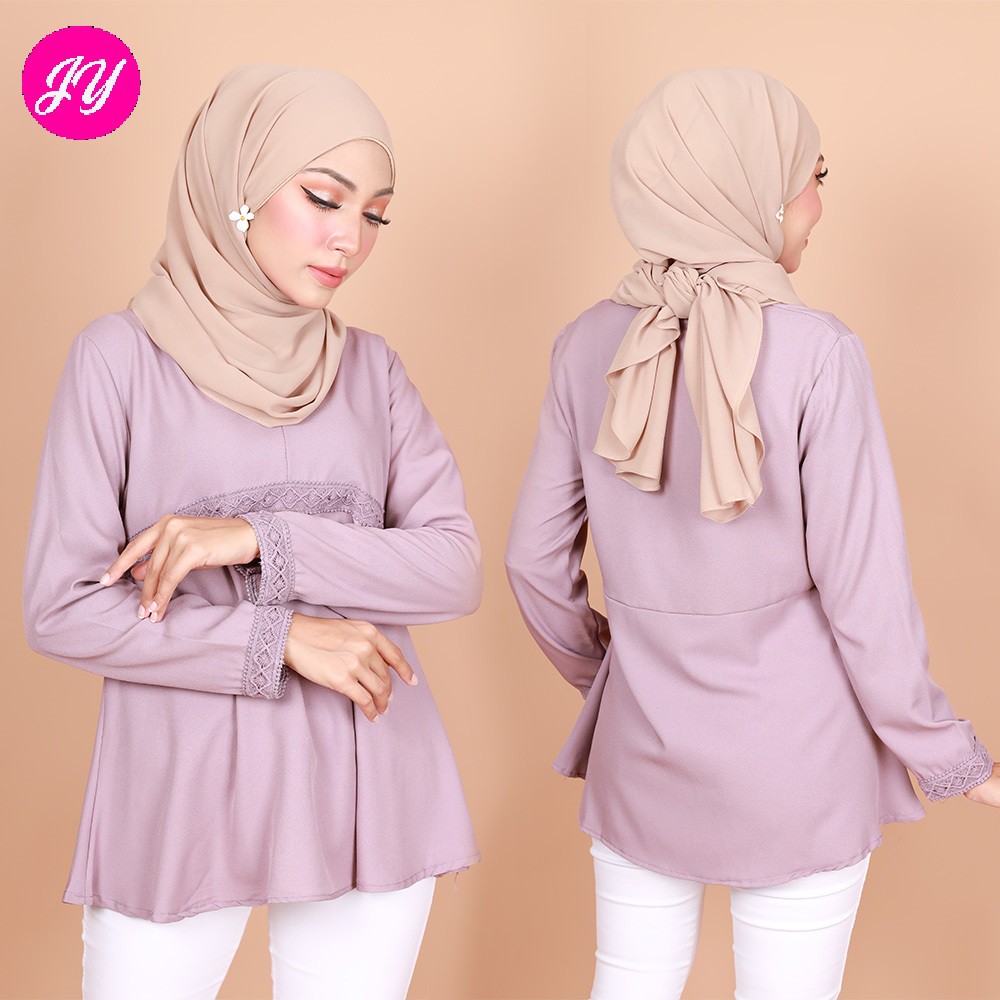Women Rina V Neck Ready Stock Muslimah Long Sleeves Blouse Baju Wanita ***B22402***