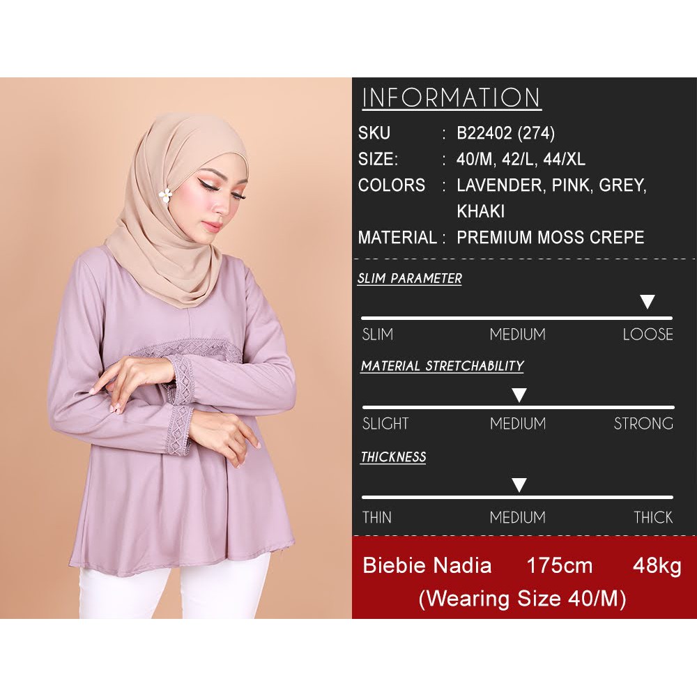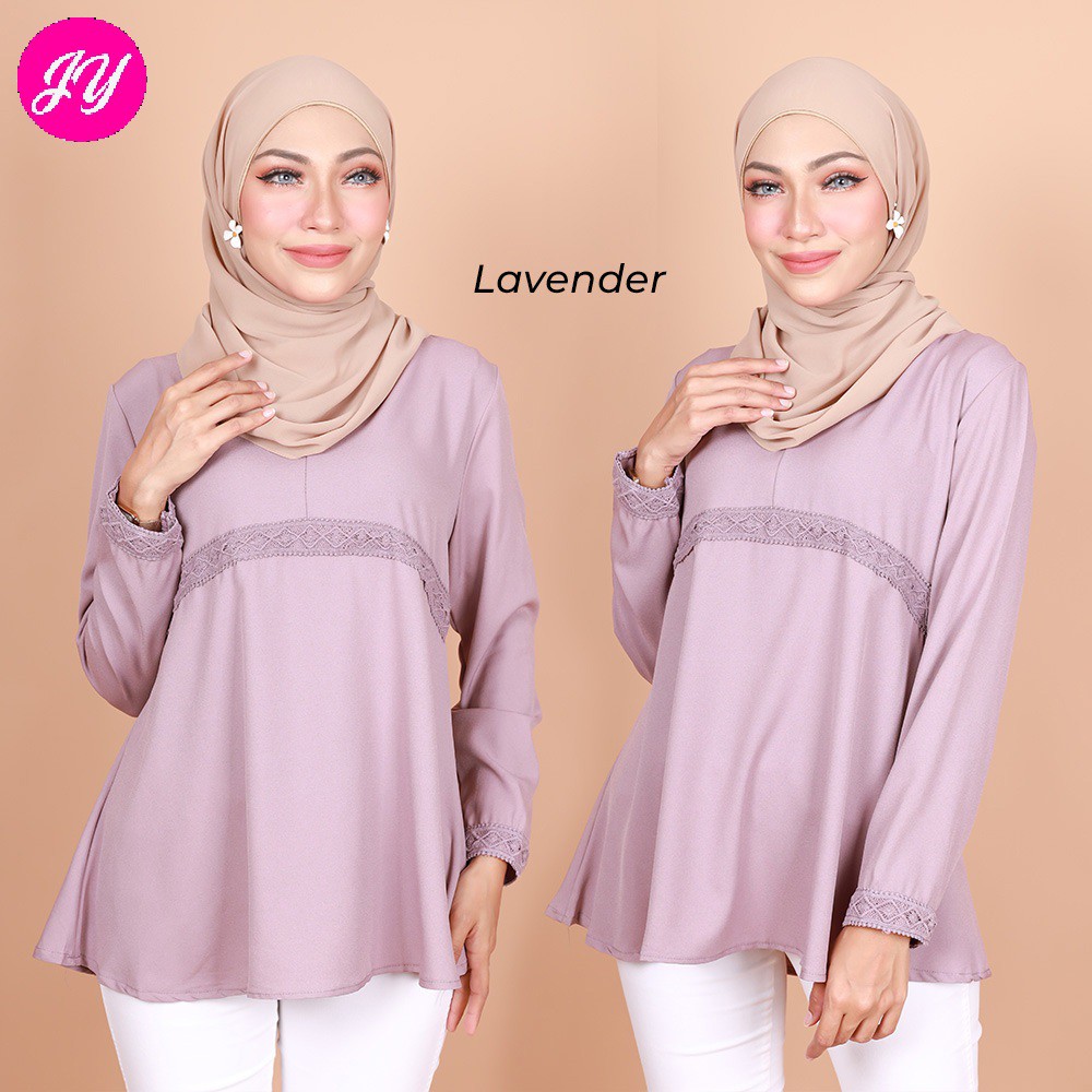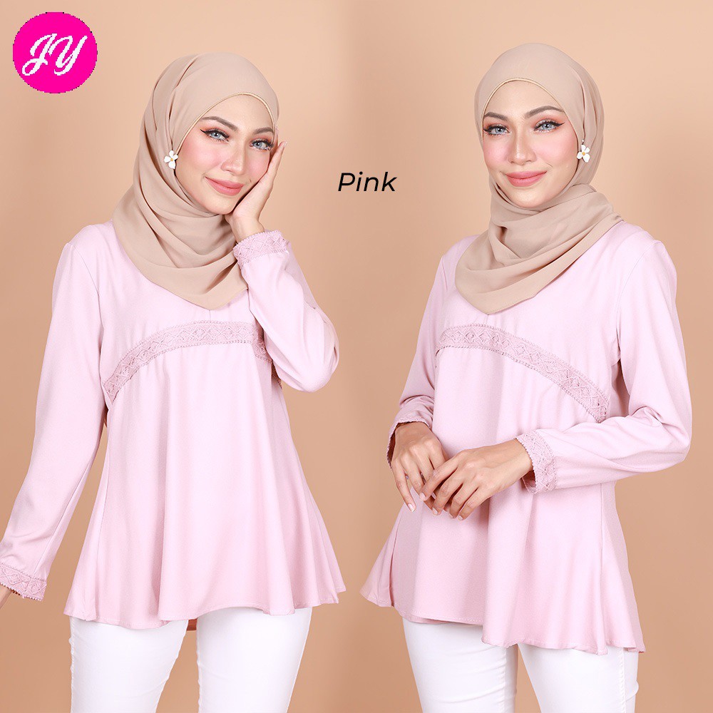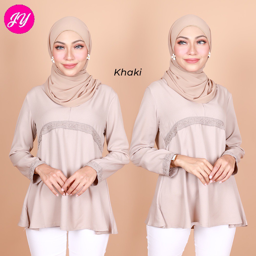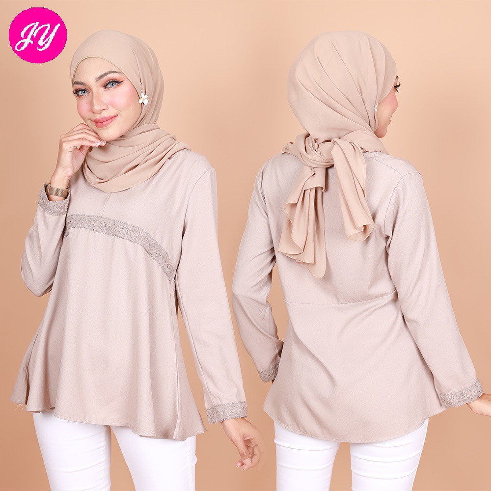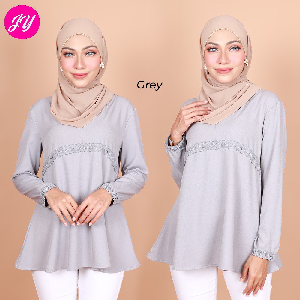 Women Rina V Neck Ready Stock Muslimah Long Sleeves Blouse Baju Wanita ***B22402***
