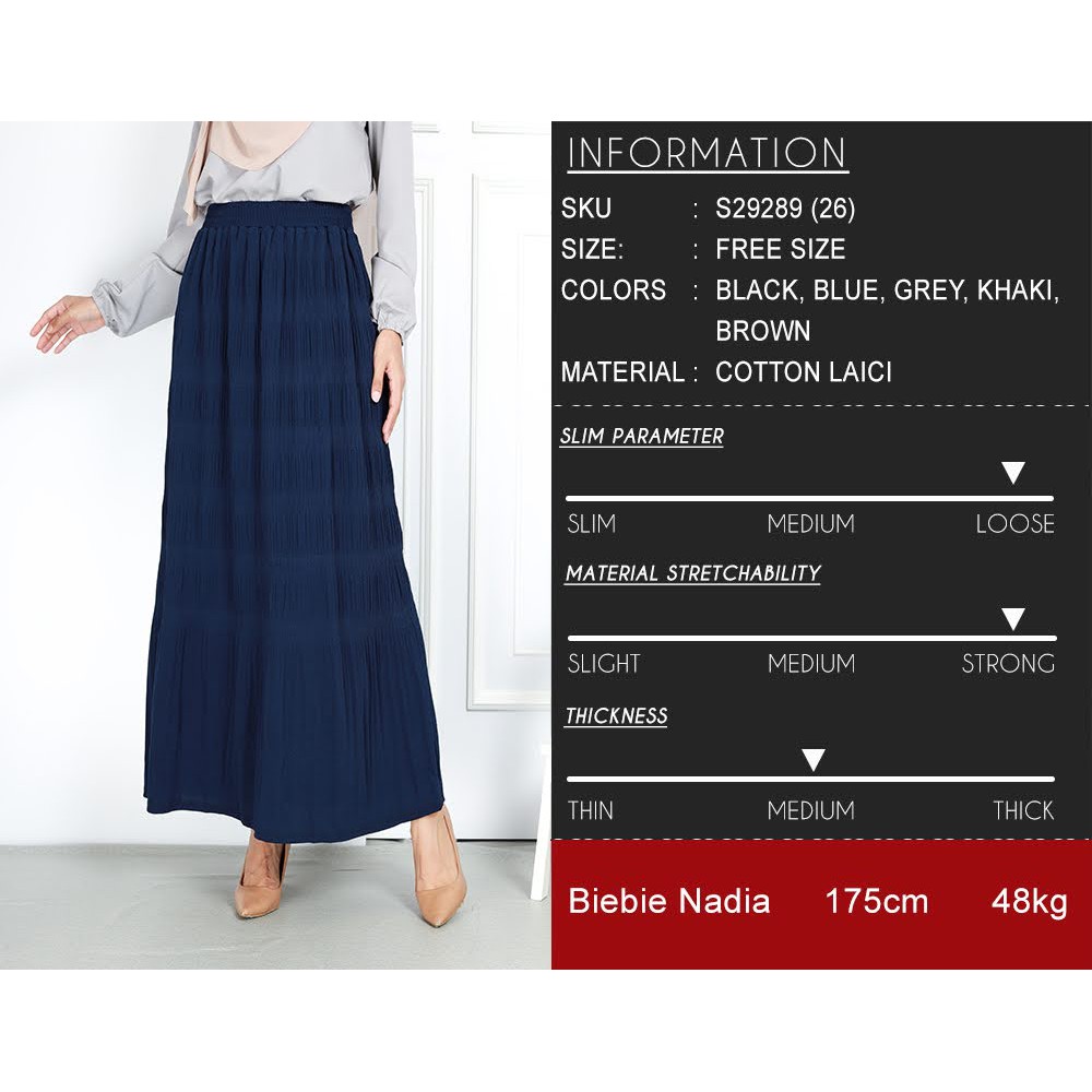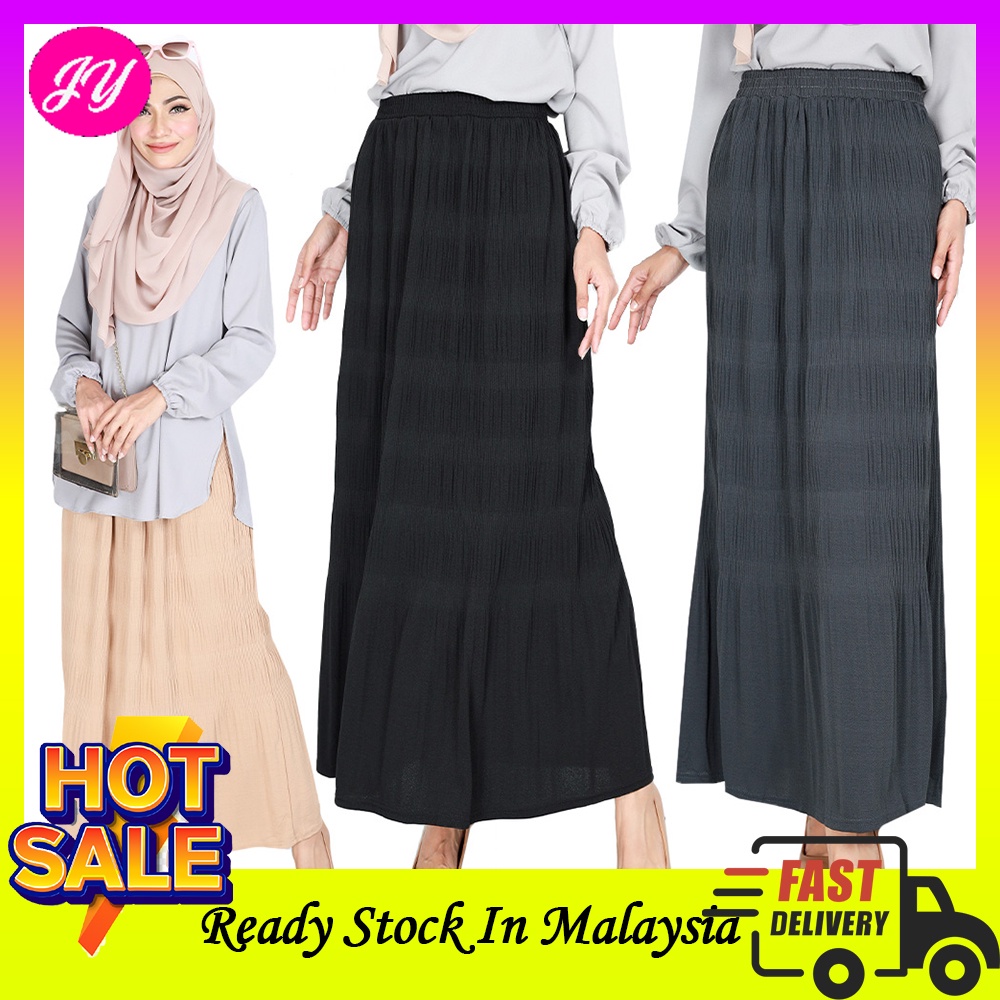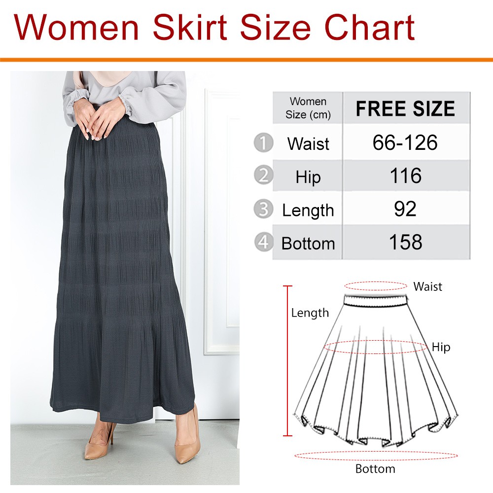 Women Casual Plus Size Ready Stock Textured Elastic Long Skirt Wanita Muslimah Big Size Besar **S29289**
