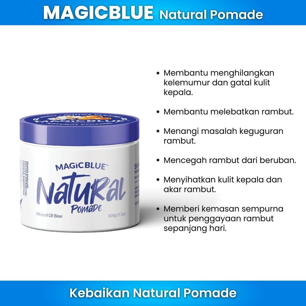 [Natural Pomade Magicblue 100g] uban, ank rambut rosak, kelemumur, kepala gatal, rambut nipis, kayap, enzema, psoriasis