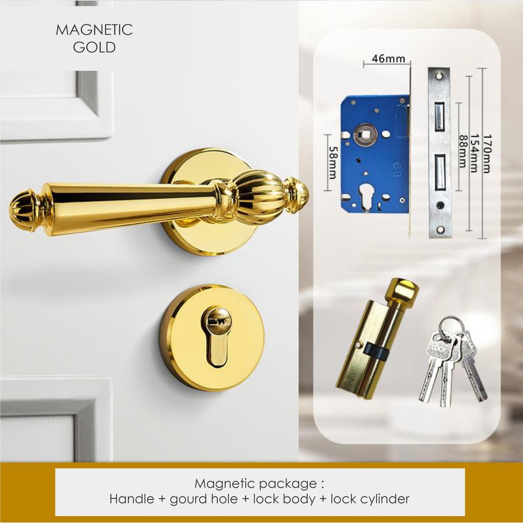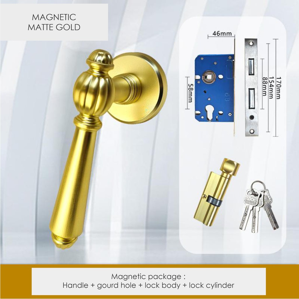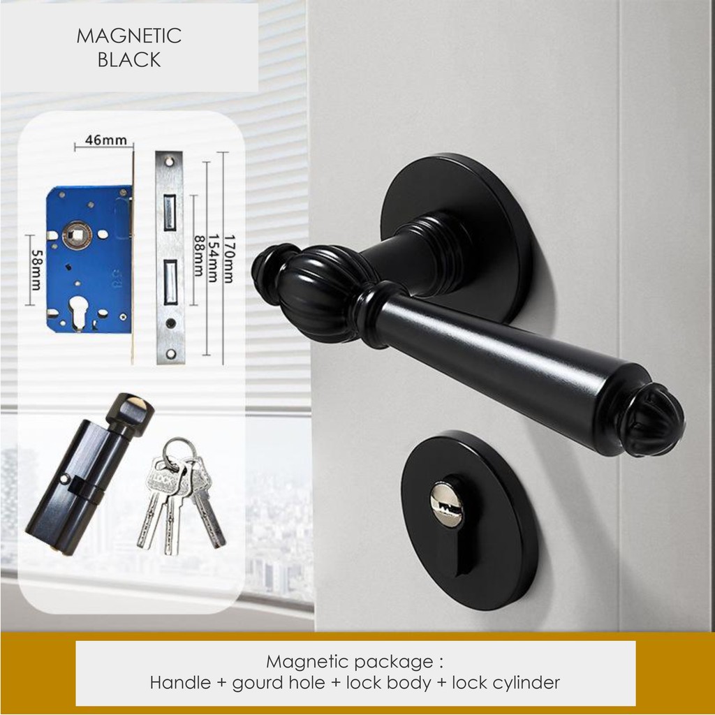 BC Interior Lock Set Handle Magnetic Aluminum Alloy Tombol Pintu Cylinder Kunci Bilik Rumah House Bedroom 室內門鎖 門把手