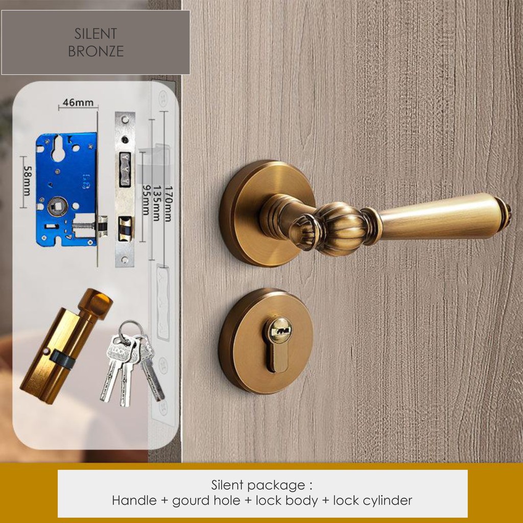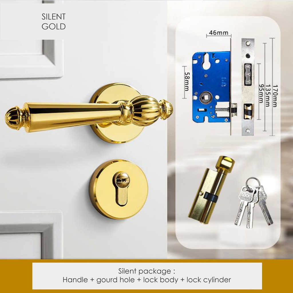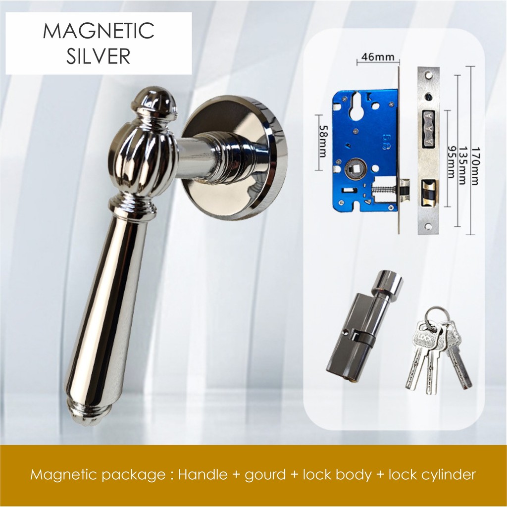 BC Interior Lock Set Handle Magnetic Aluminum Alloy Tombol Pintu Cylinder Kunci Bilik Rumah House Bedroom 室內門鎖 門把手