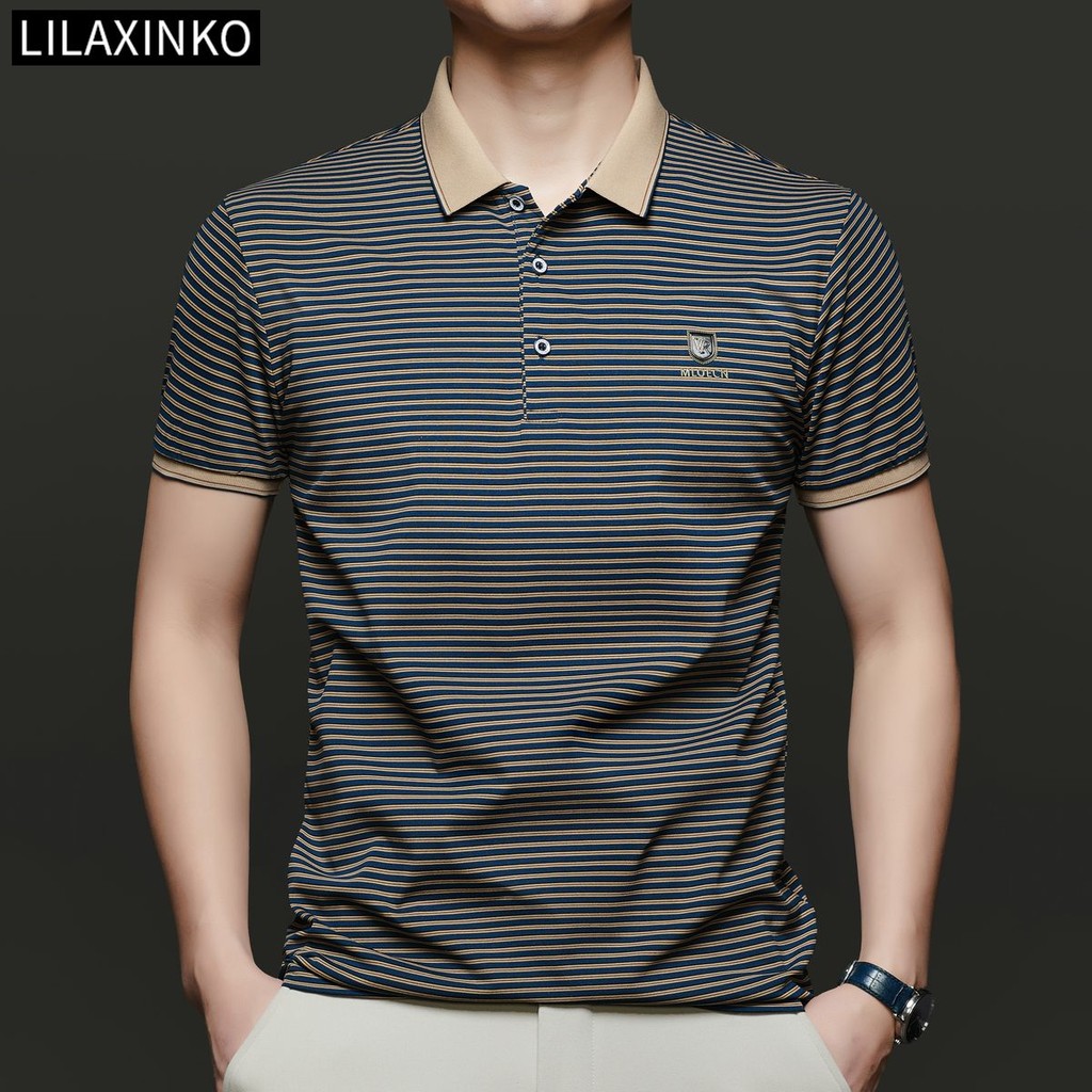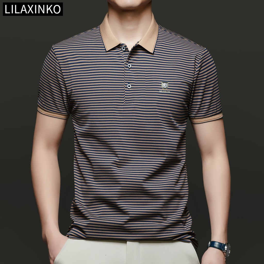Polo Shirt Men Clothing Cotton Striped Stripe Basic Short Sleeve T Shirt Top Shirts Casual Classic Fashion