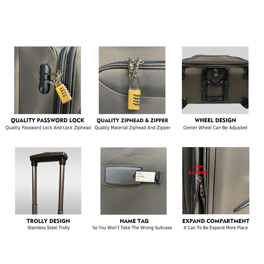 (1PCS) APOLO Soft Case Luggage / Fabric Luggage / Suitcase (Nylon) Five Wheel 360 Degree Luggage MD268