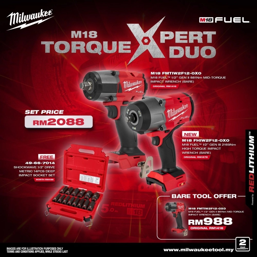 Milwaukee M18 Torque Xpert Duo Combo M18 FMTIW2F12-0X0 & M18 FHIW2F12-0X0 Milwaukee M18 Torque Xpert Duo M18 FMTI