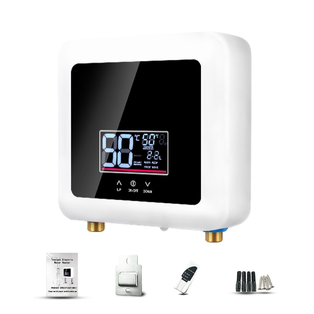 Instant Water Heater 7500W Mini Electric Tankless Water Heater Wall-Mounted LED Display Support Thermostat Mode/Power Adjustment for Home Kitchen Bathroom