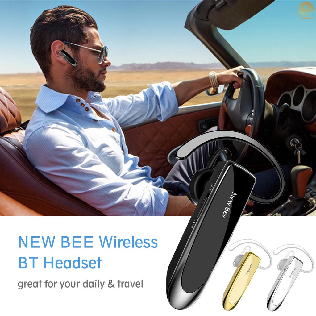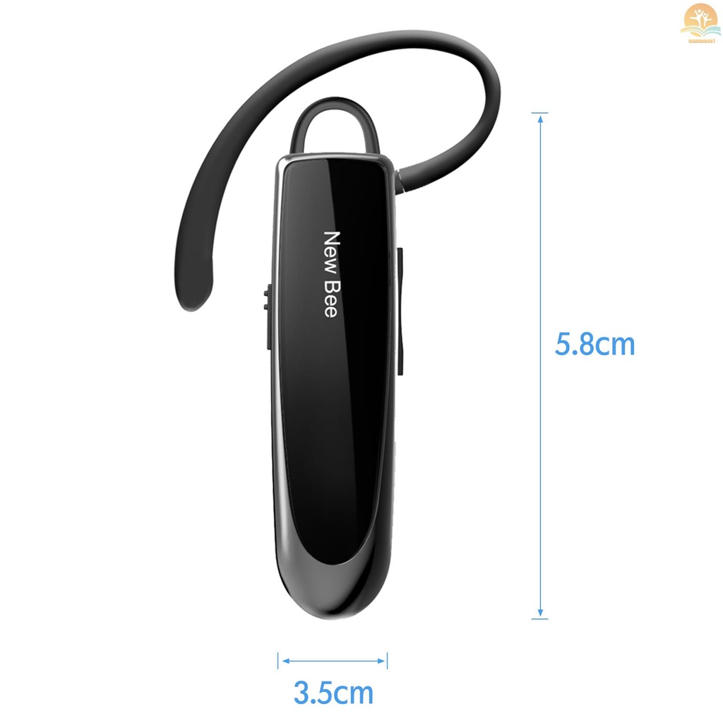 NEW BEE Single Wireless Bluetooth Headset Earphone Noise Cancelling Mic Sports Headphone Hands-Free Earbuds 24 Hrs Driving 60 Days Standby Time for Office Travel Driving
