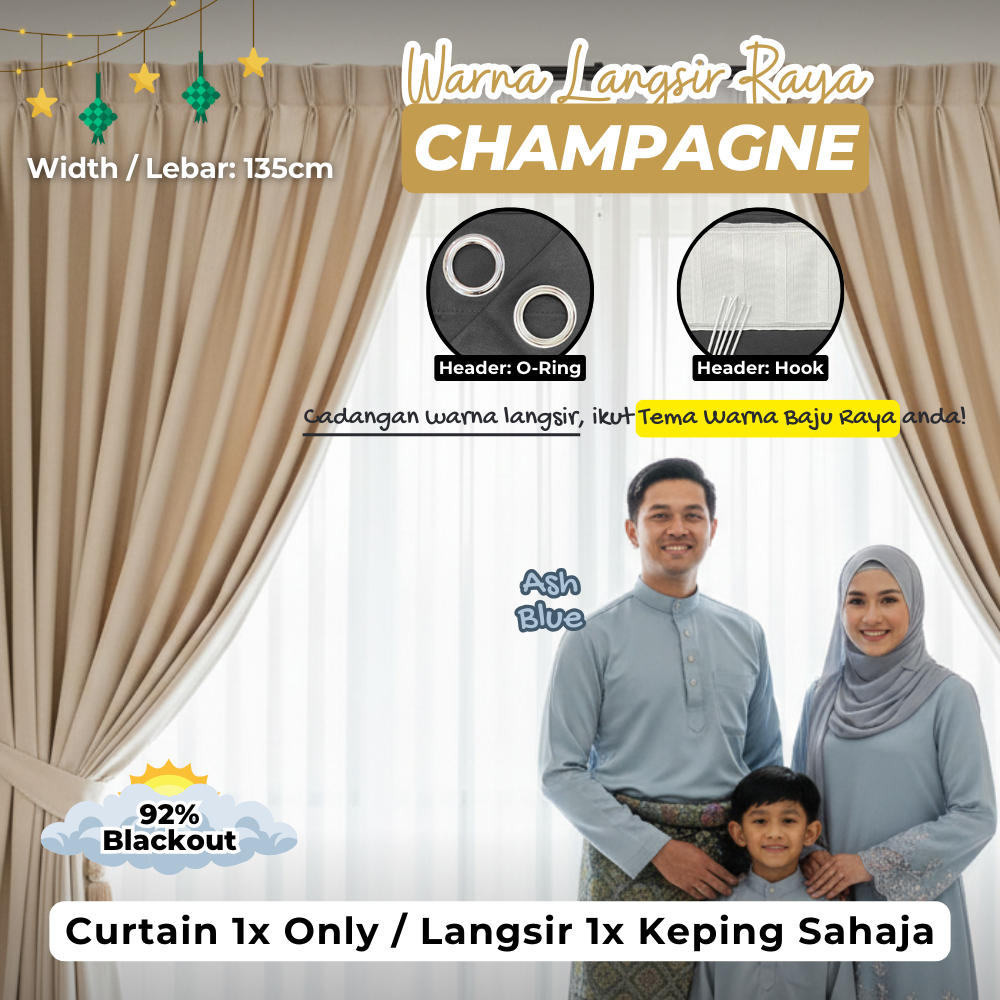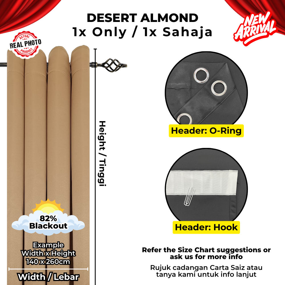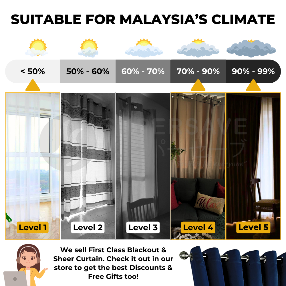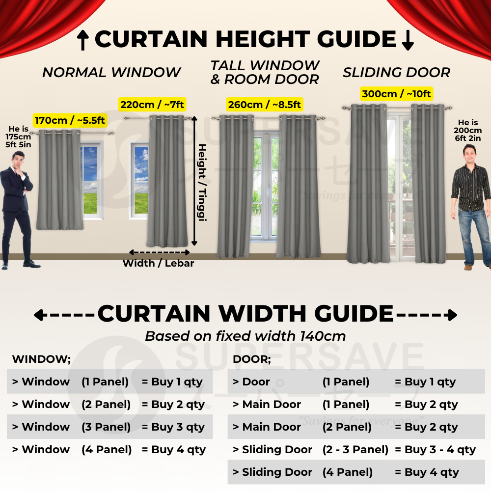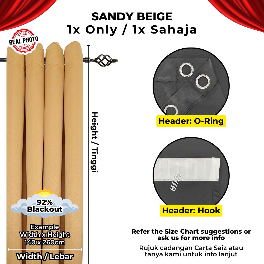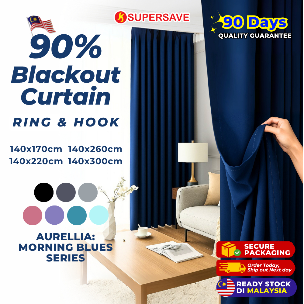 SUPERSAVE 90% Blackout Curtain Ready Made Langsir Blackout Siap Jahit Sunblock Curtain Langsir Tebal with Ring / Hook