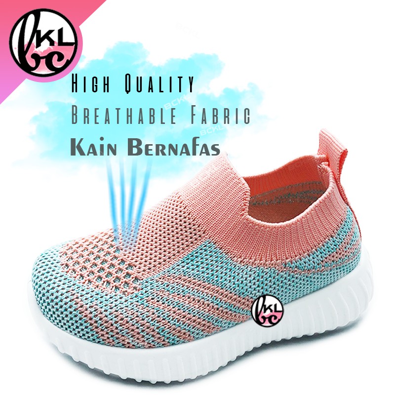 【 BCKL 】Baby & Kids Sport Shoes with Colors Striper | Blue Black Boys Girls Twins Sneakers | Kasut Sukan Budak 22-39