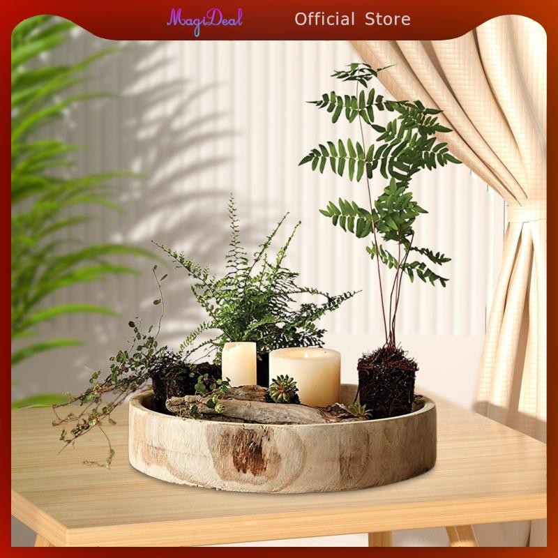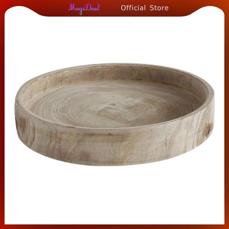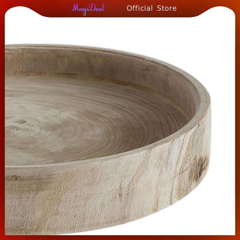 MagiDeal Round Wooden Tray Serving Platter Dried Fruit Tray Centerpiece Candle Holder Tray for Ottoman Coffee Table Kitchen Home Decor