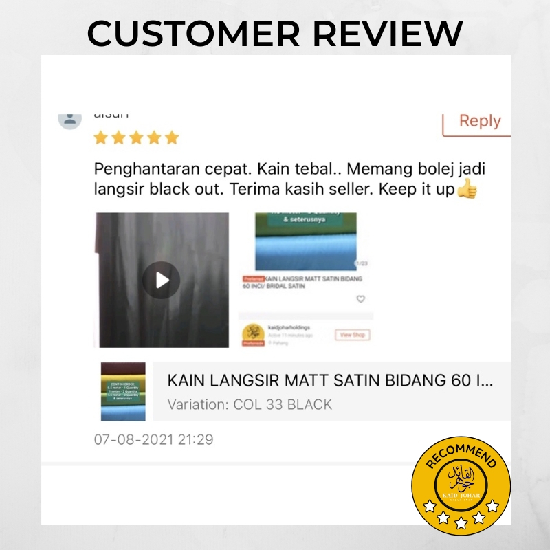 Kain Langsir Matt Satin Bidang 60 Inci | Bridal Satin Berkualiti | Cantik Jatuh Untuk Hiasan Rumah