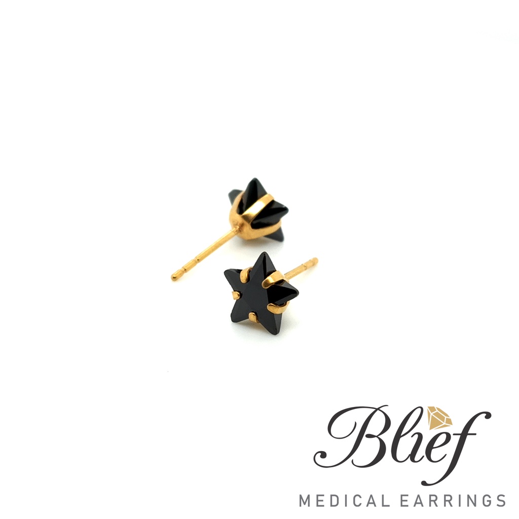 Blief QPP Medical Earring Star Jet 24 Karat Gold or Medical Stainless Steel SCZJE