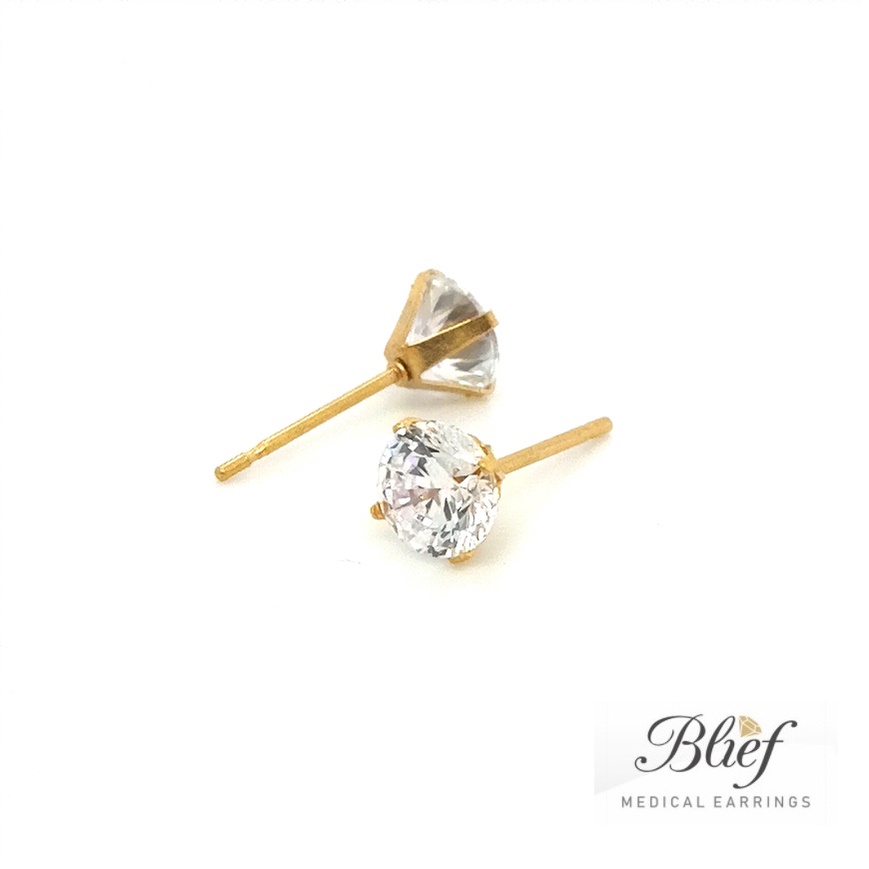 Blief QPP Medical Earring Round Crystal 24 Karat Gold or Medical Stainless Steel RCZCR