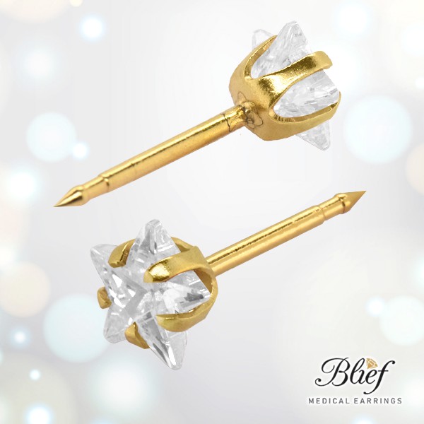 Blief QPP Medical Earring Star CZ Crystal 24 Karat Gold or Medical Stainless Steel SCZCR