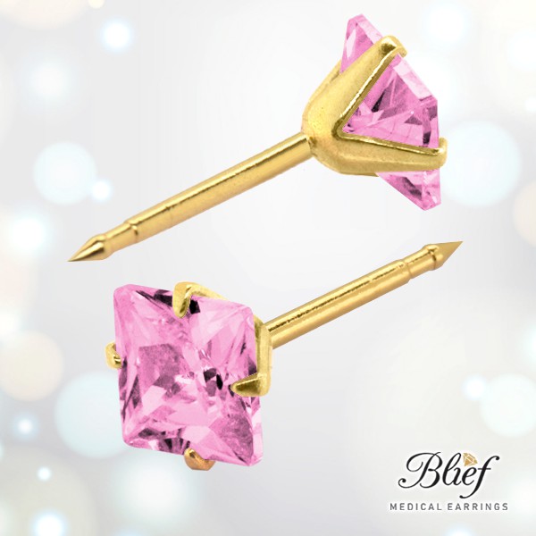 Blief QPP Medical Earring Square CZ Rose 24 Karat Gold or Medical Stainless Steel QCZRO