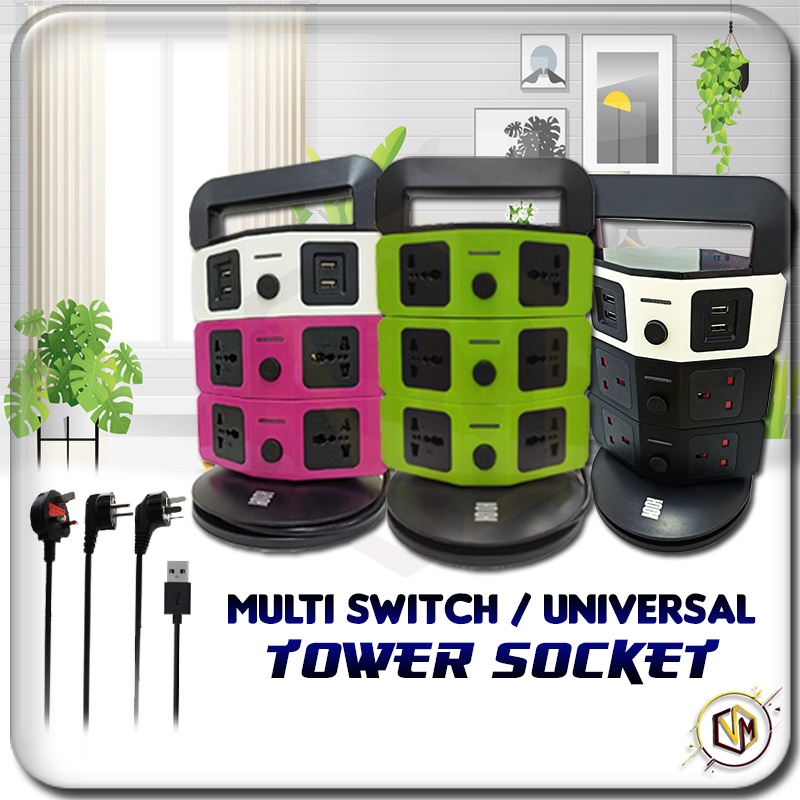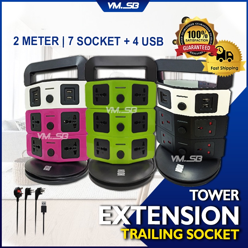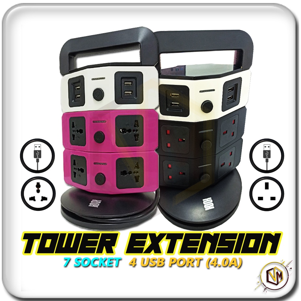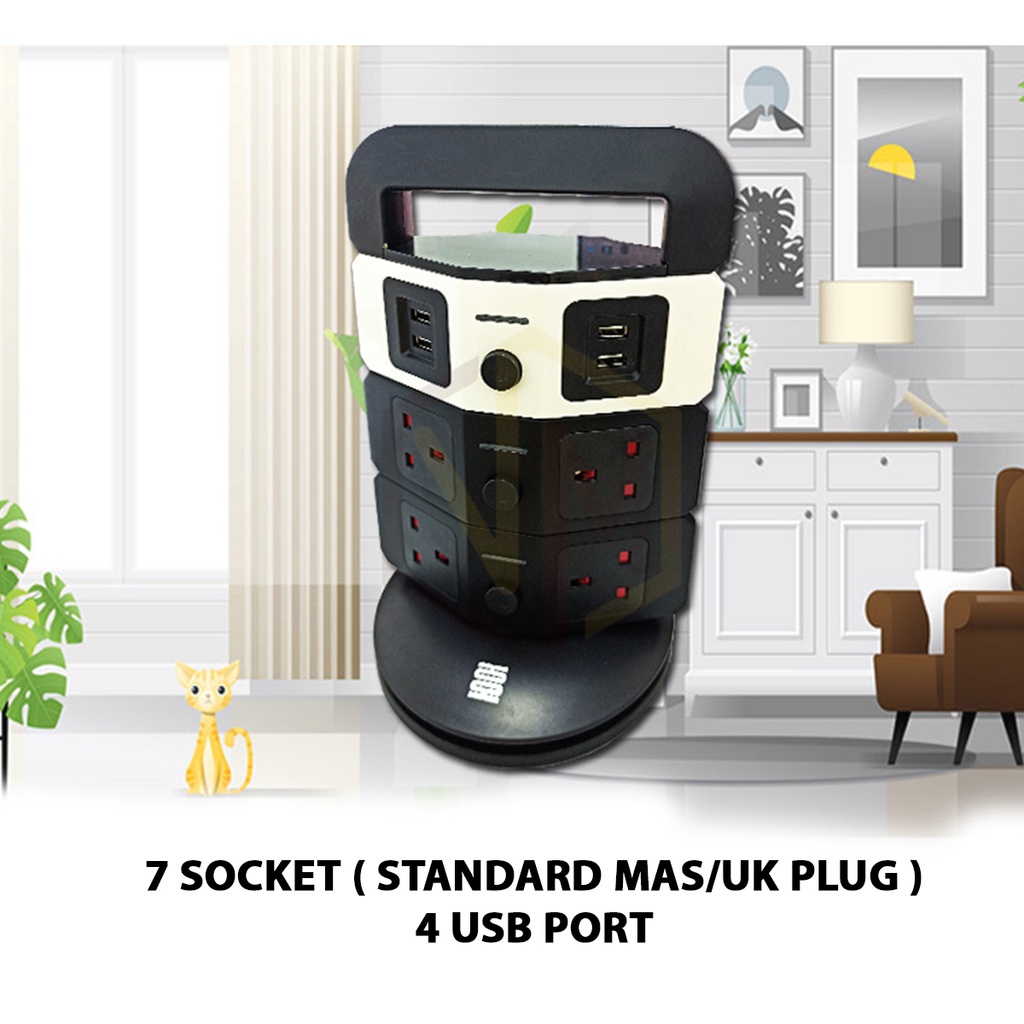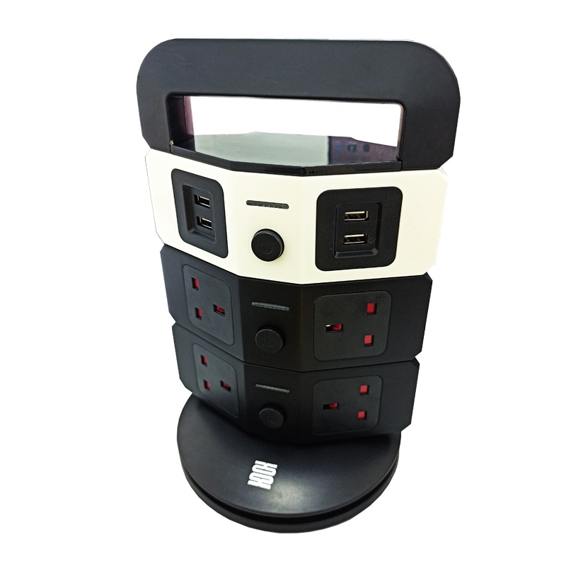 Ultrathin Timer 7 Socket 4 USB 3 Layer Tower Extension Trailing Socket Plug Multi Universal Soket Vertical Tower