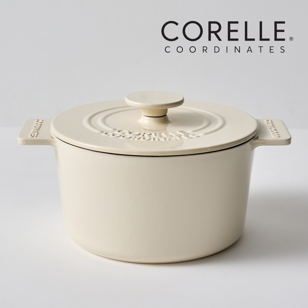 CORELLE Ashley Cast Iron Nonstick Stew Pot (14cm, 16cm, 18cm, 20cm, 22cm) Ivory