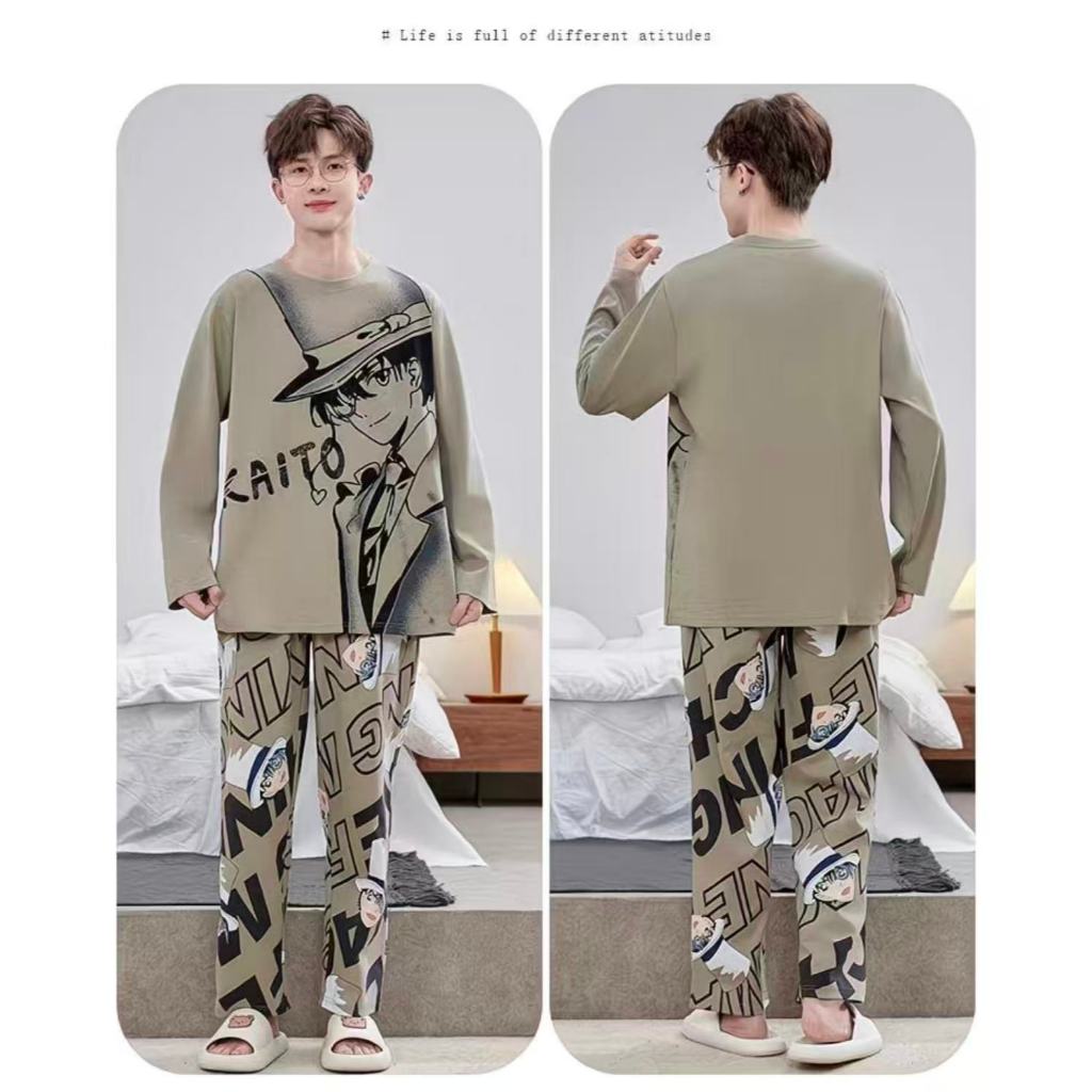 Korean version Boys Pajamas Sets Baju Tidur Budak Lelaki Teenager Long Sleeve Pj for Kids Cotton Youth Pajamas Student Suits Fashionable Sweet Cartoon Home Clothes