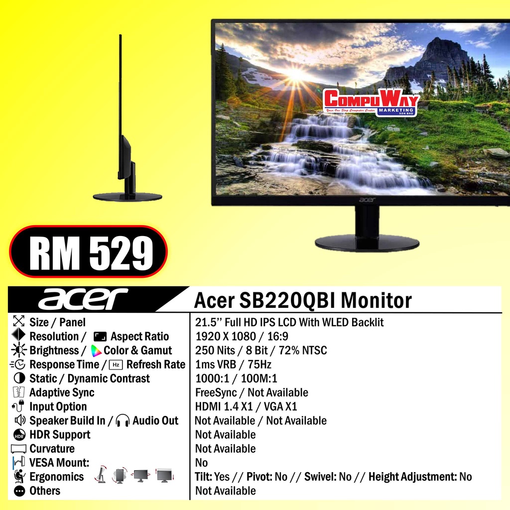 ACER SB220QBI (FHD/IPS/21.5''/75HZ/1MS/FLAT) MONITOR