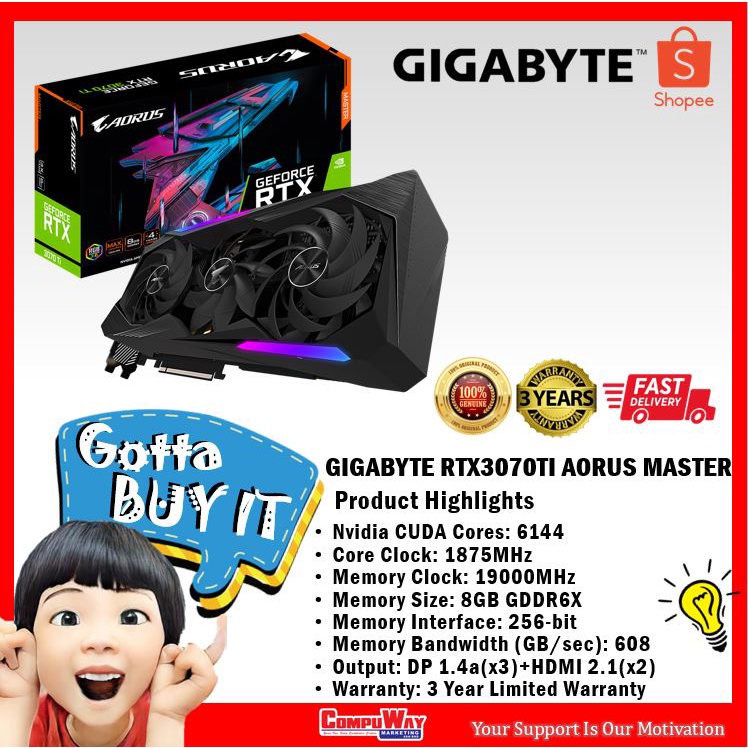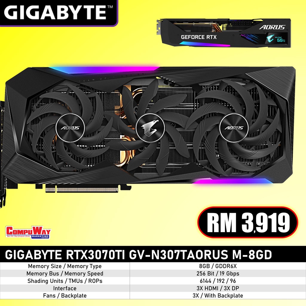GIGABYTE RTX3070TI AORUS MASTER 8GD6X (3 FAN/6144 CUDA/192 TMU/96 ROP/256 BIT/19Gbps) GRAPHIC CARD