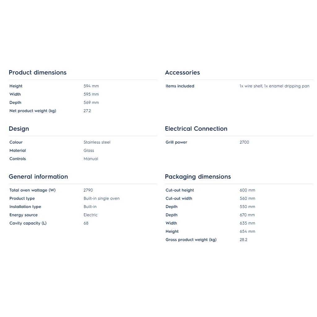 Electrolux Built In Oven With Grill Function (68 L) KOHLH00XA / (65L) KOH2H00BX