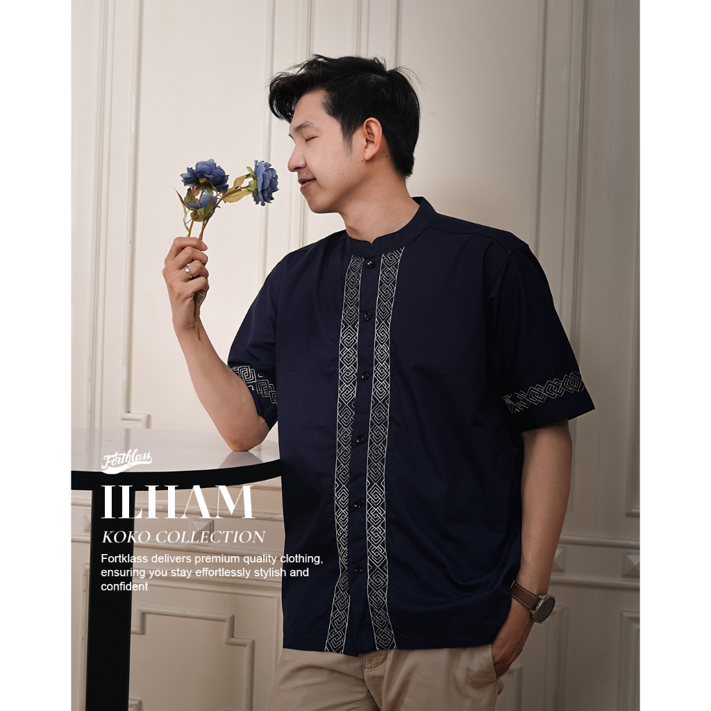 FortKlass X Dennis Lim ILHAM Shirt Embroideredkoko - Eid Clothes - Short Sleeve Muslim Men's Clothing