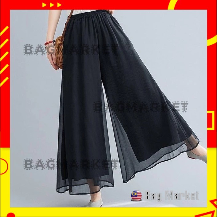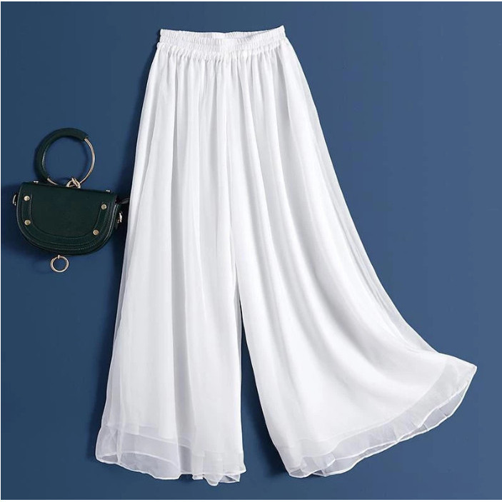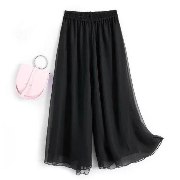 Women Chiffon Wide Leg Pants with Elastic Waist Thin White and Black High Waist Pants Women Fashion Loose A-line Pants