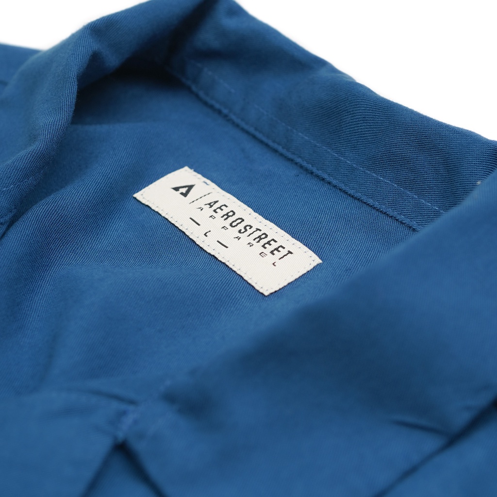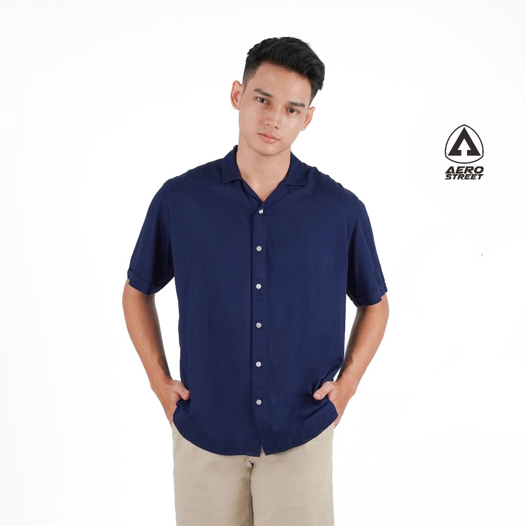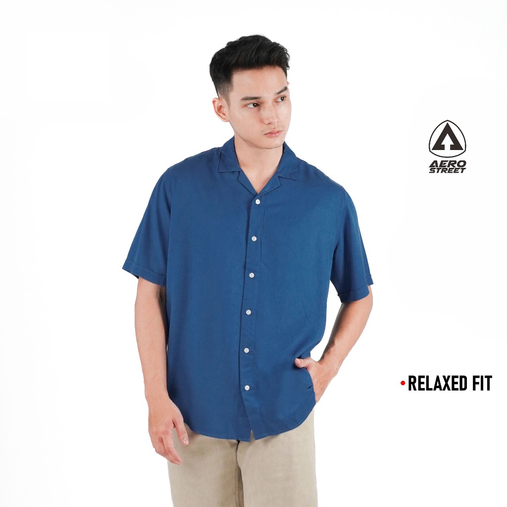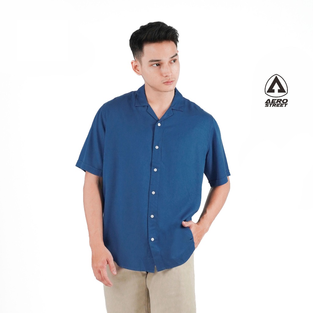 KEMEJA Aerostreet Rayon Shirt Marva Prussian Blue Hawaiian Plain Bright QABAA
