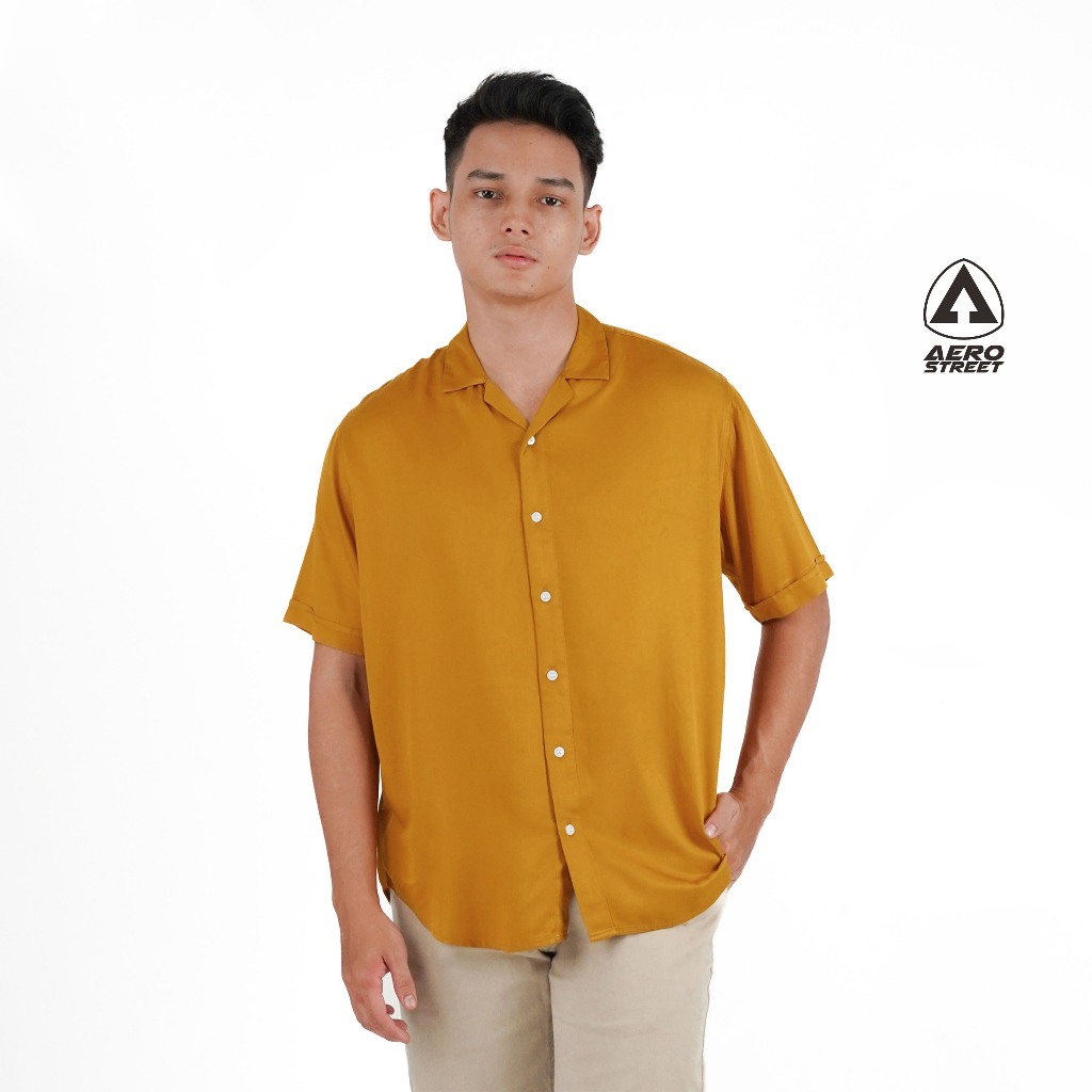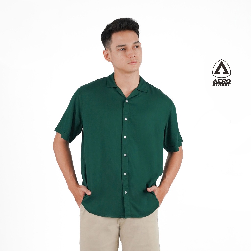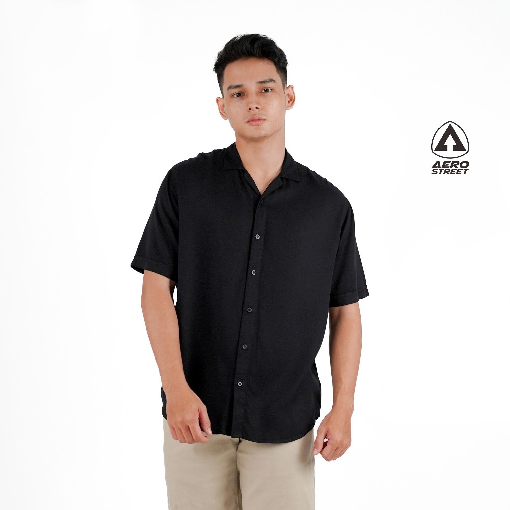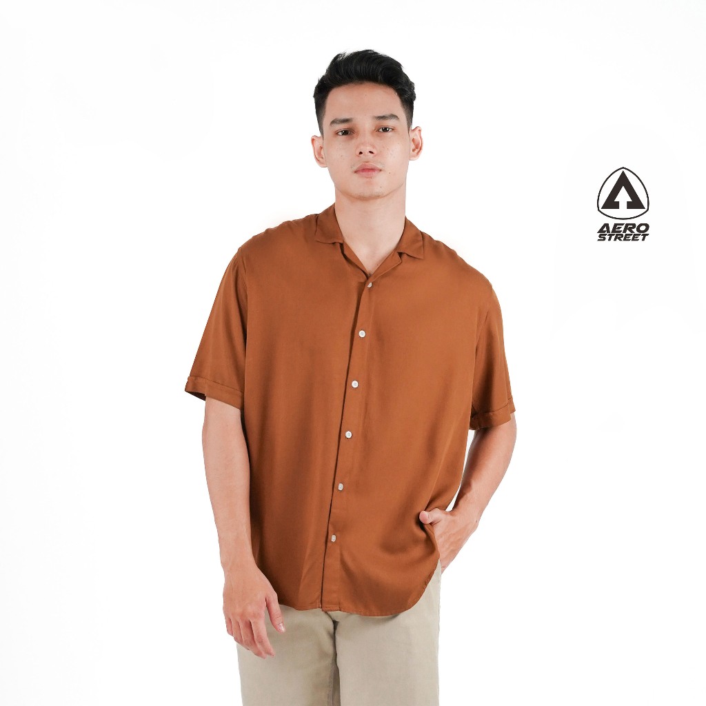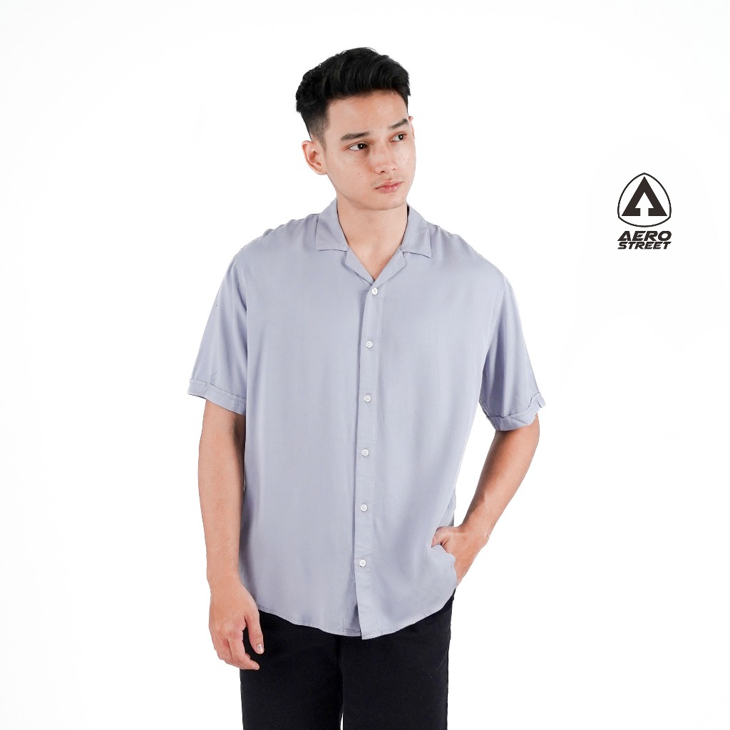 KEMEJA Aerostreet Rayon Shirt Marva Prussian Blue Hawaiian Plain Bright QABAA
