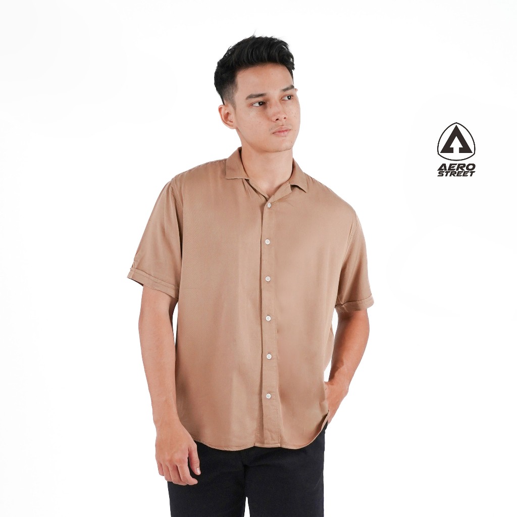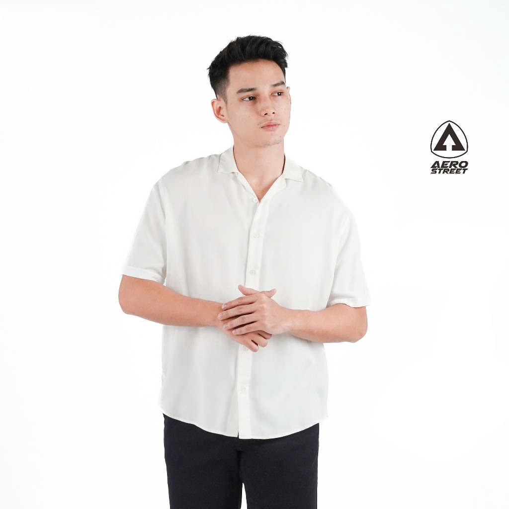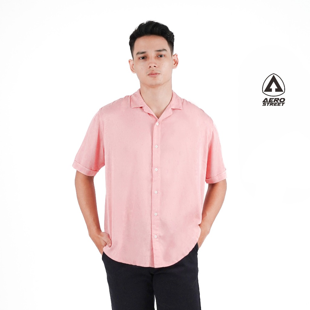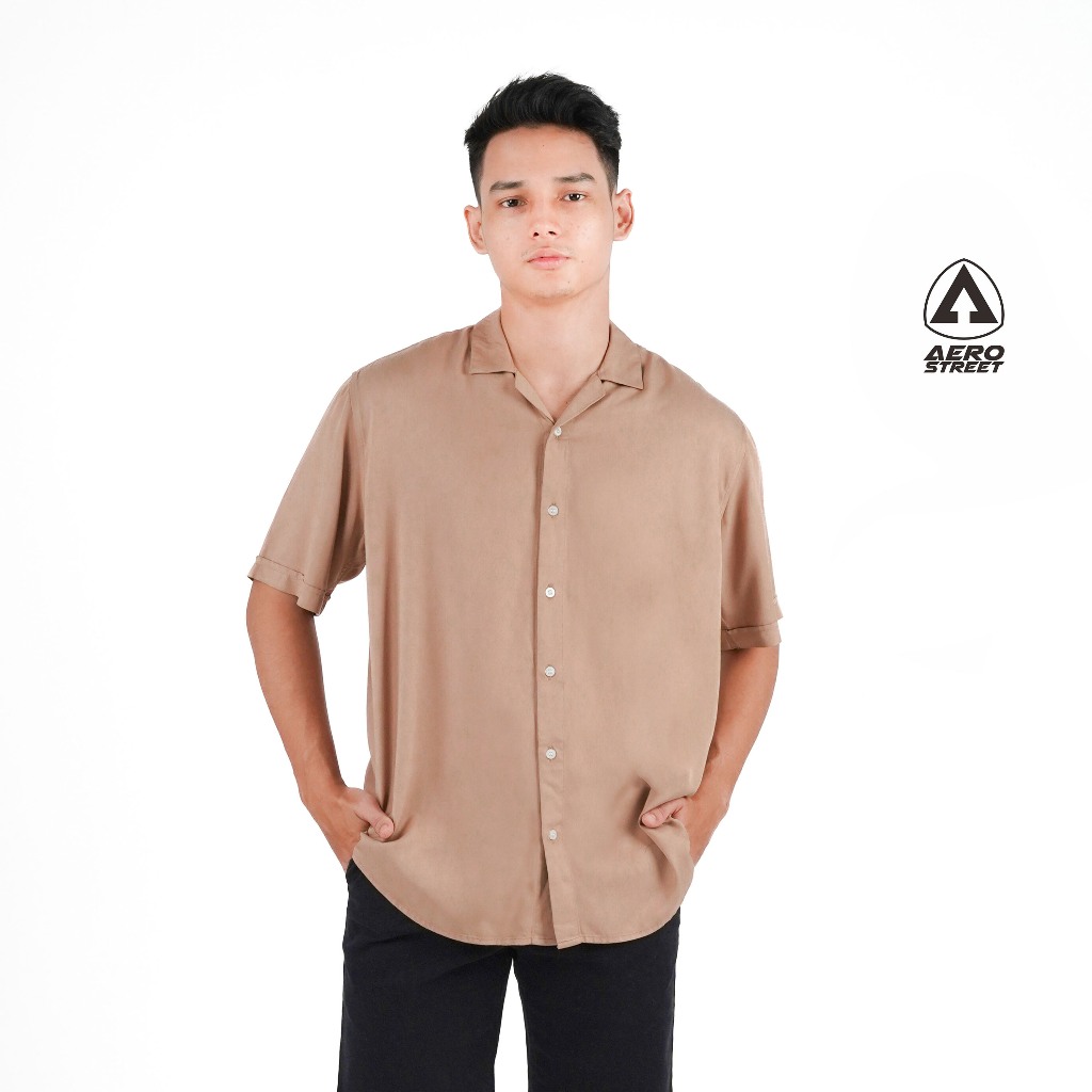 KEMEJA Aerostreet Rayon Shirt Marva Prussian Blue Hawaiian Plain Bright QABAA