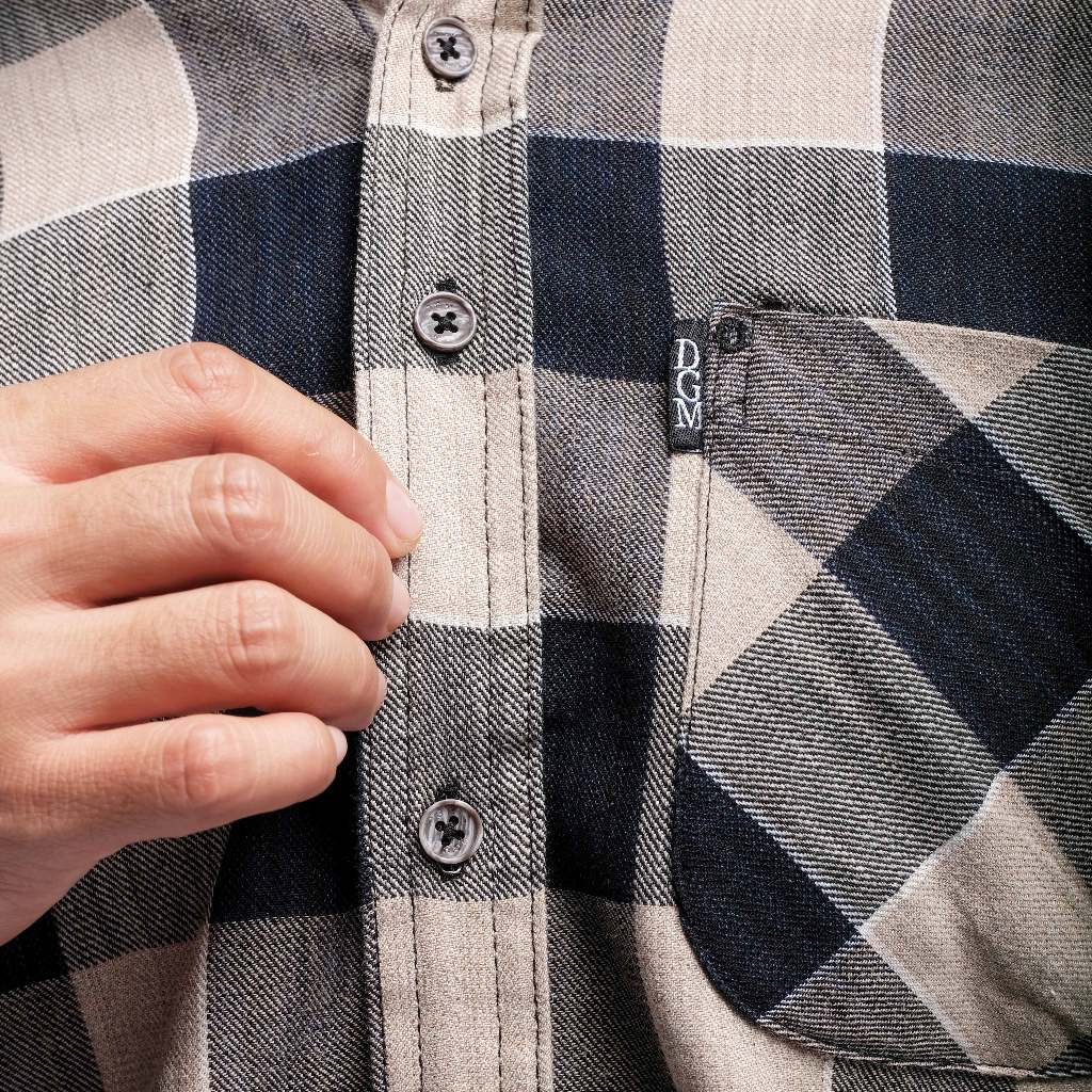 KEMEJA DGM Men's Long Sleeve Flannel Shirt, Cream, Black and Grey Check, Men's Flannel Shirt, Men's Long Shirt 1098