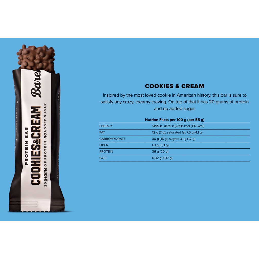 [READY STOCK] BAREBELLS Cookies & Cream, 20g Protein, No Added Sugar, 1 Bar (1x55g)