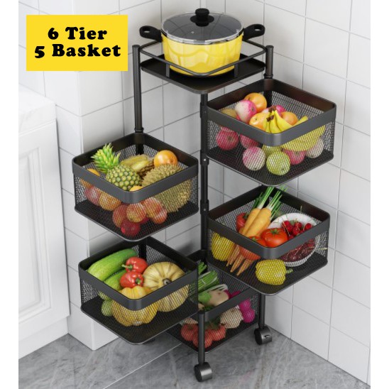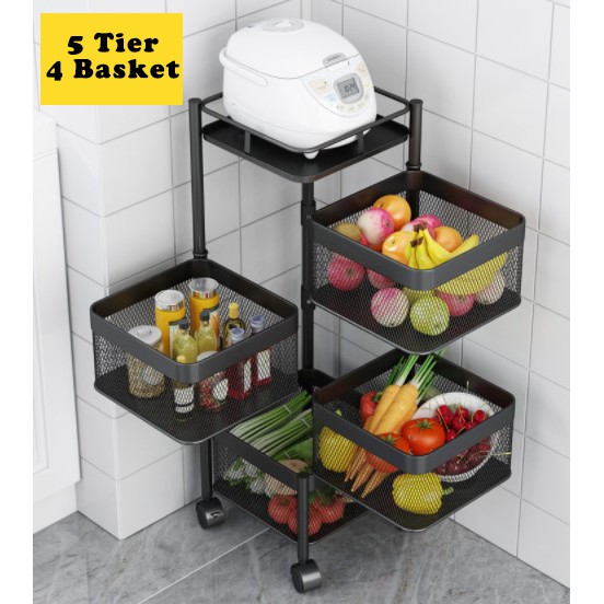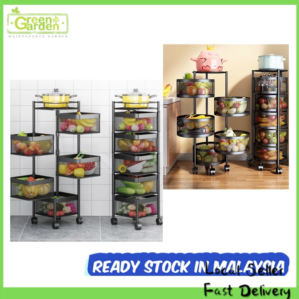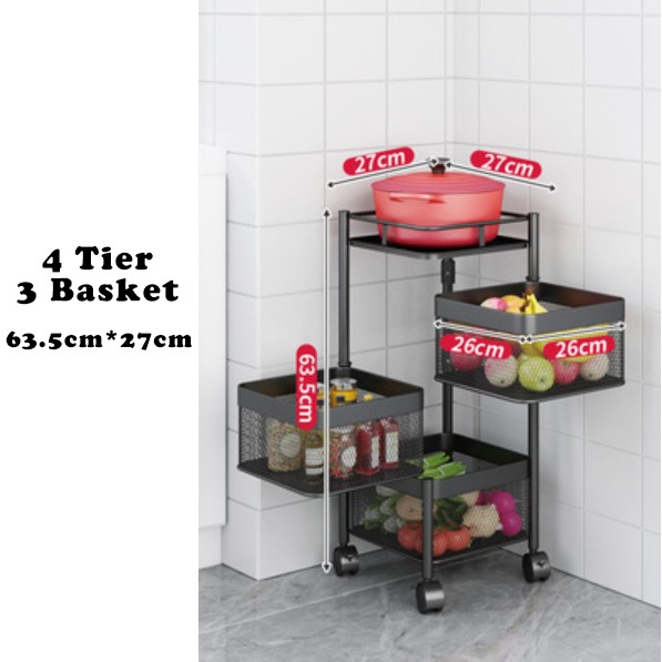 Rak Dapur Kitchen Storage Rack Vegetable Multifunction Kitchen Shelf 360 Rotate Square Basket