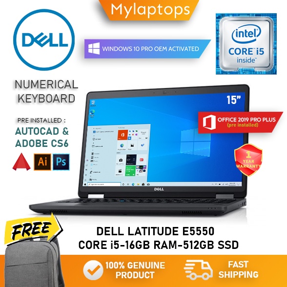 DELL LATITUDE E5550 ULTRABOOOK - CORE i5-5300U / 16GB RAM & 512GB SSD / 15 INCH DISPLAY / WIN 10 PRO
