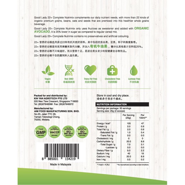 Good Lady 22+ 有机牛油果好谷粮 500g (EXP: 2027) 22+ Complete Organic Avocado Multigrain Nutrimix 500g (EXP: 2027)