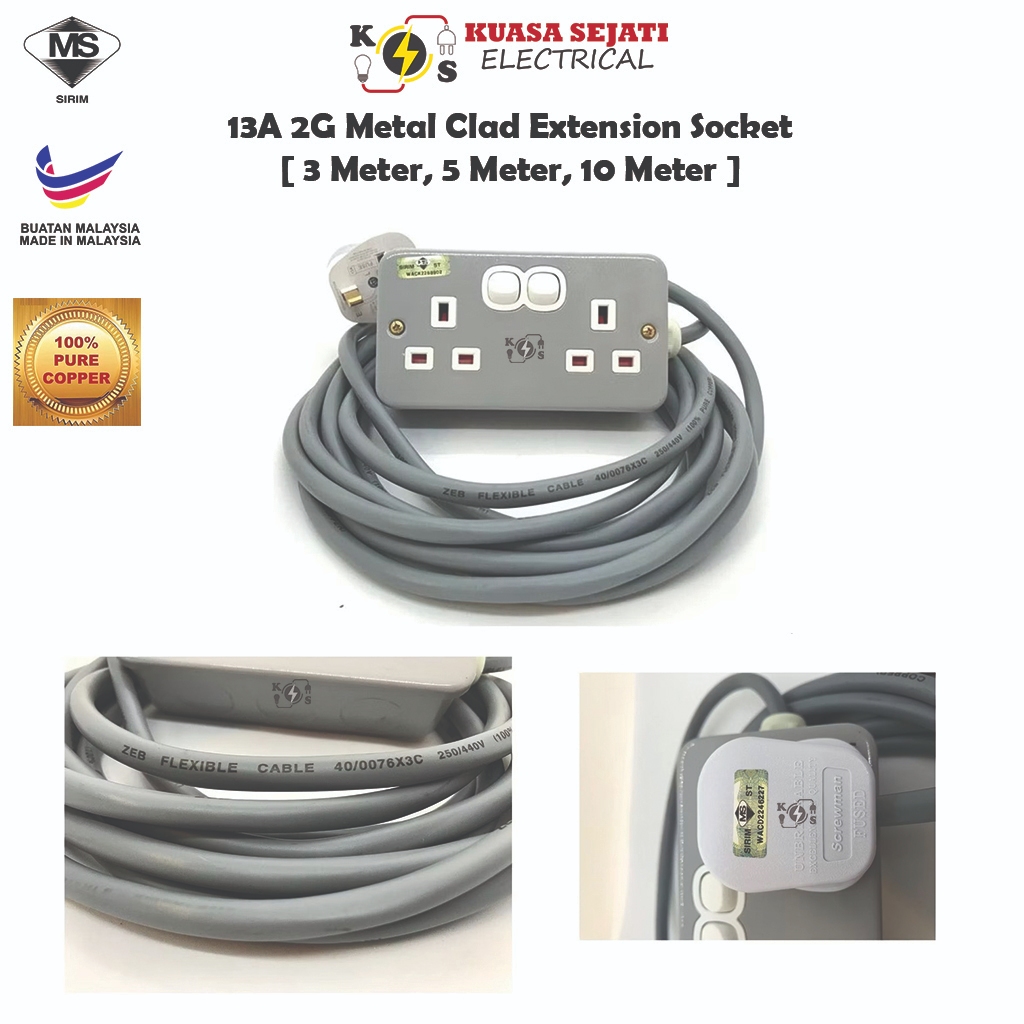 [SIRIM] 2 Gang 13A Heavy Duty Extension Portable Metal Clad - 3M/5M/10M