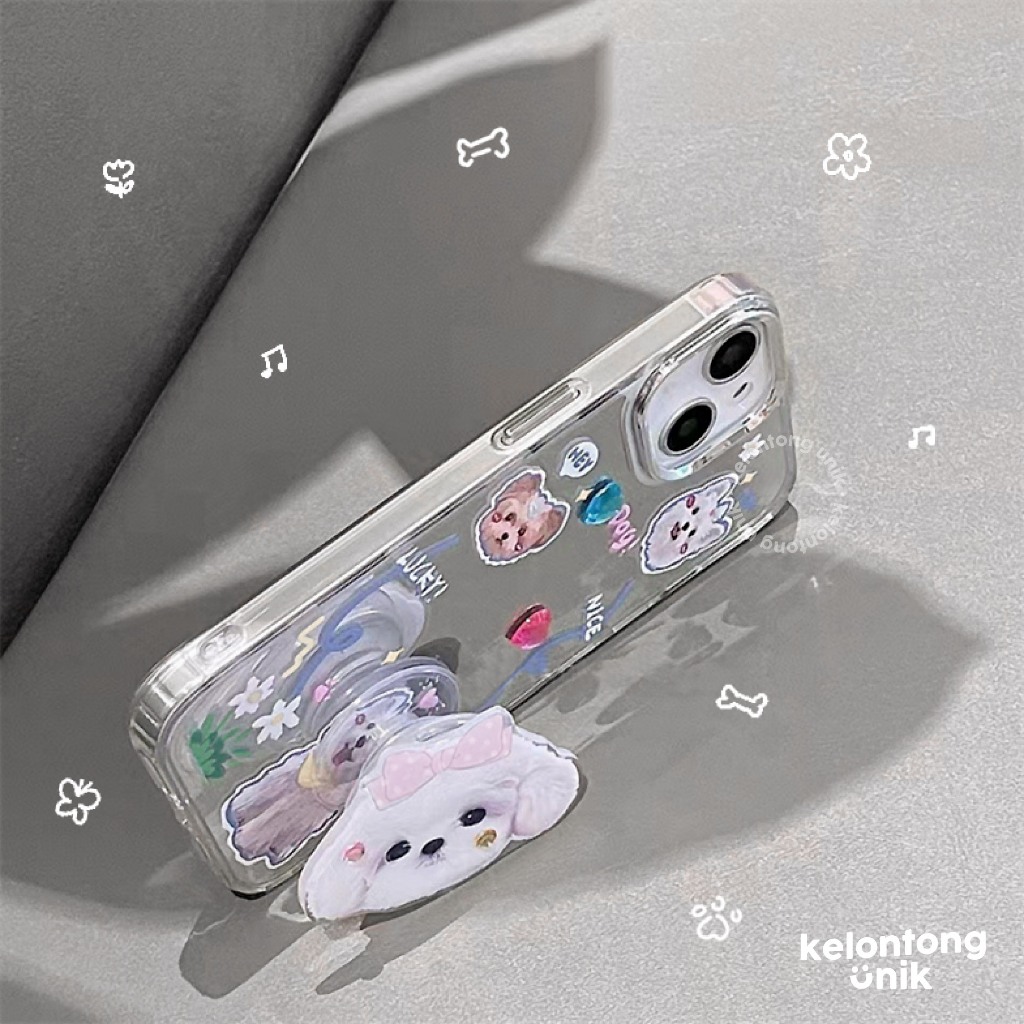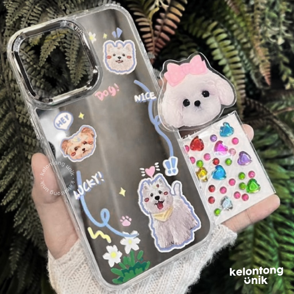 KELONTONG UNIK | (Free Griptok & DIY Sticker) Kyutie Puppy Mirror Case with Griptok & Diamond Heart Stickers/ Mirror Case - Hardcase/ HP Case for iPhone X XS XR XSMAX 11 12 13 14 15 PRO PROMAX PLUS,CIIKS