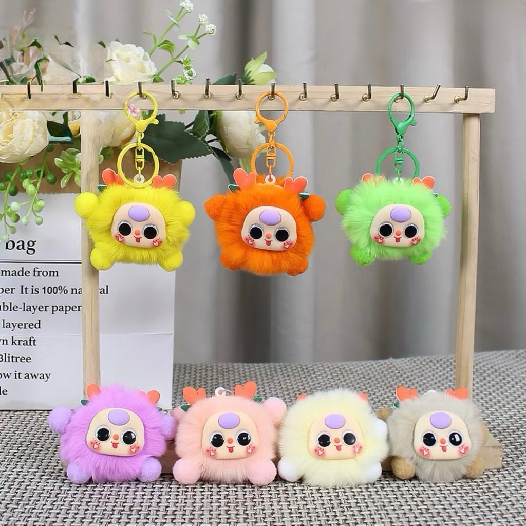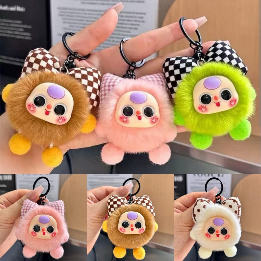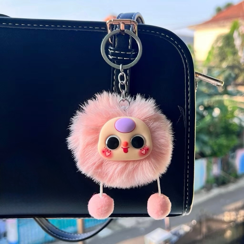 GANTUNGAN Pom Pom Baby Three Bag Keychain Fur Doll Keychain Bag Charm Pompom Bag Keychain Viral Keychain