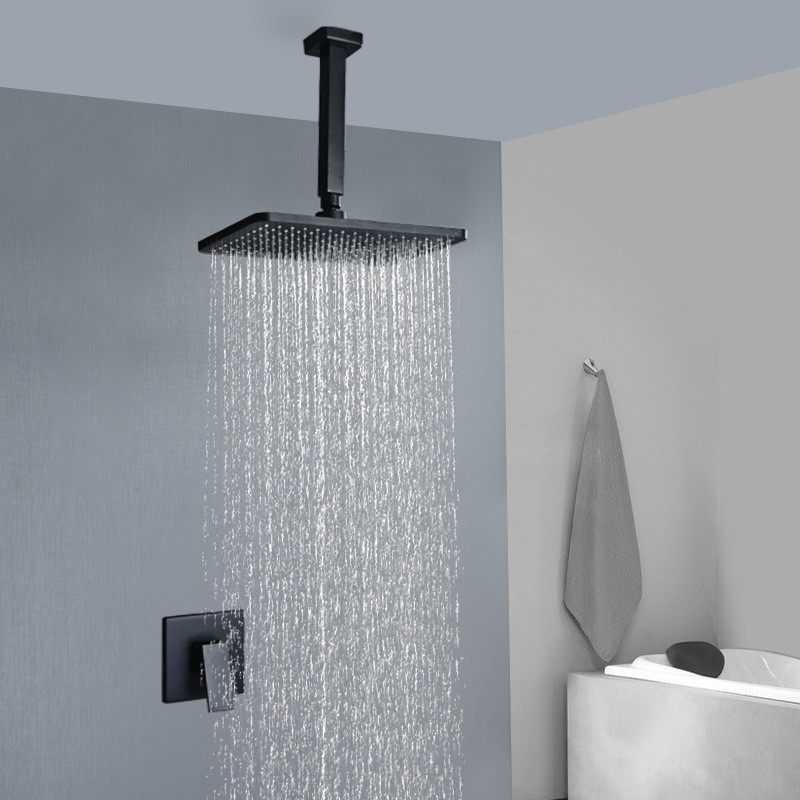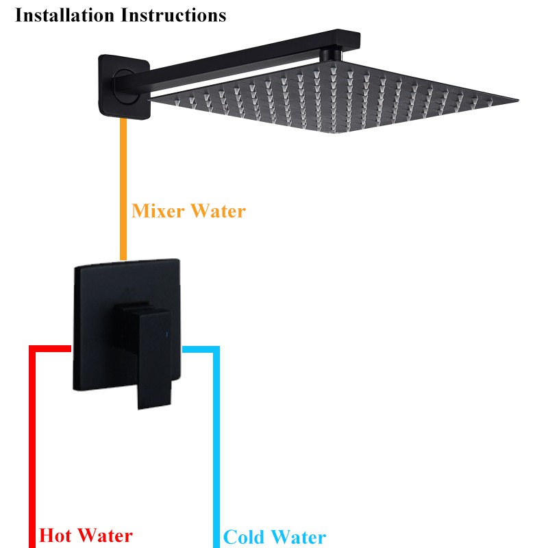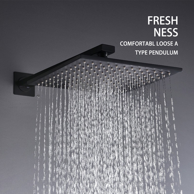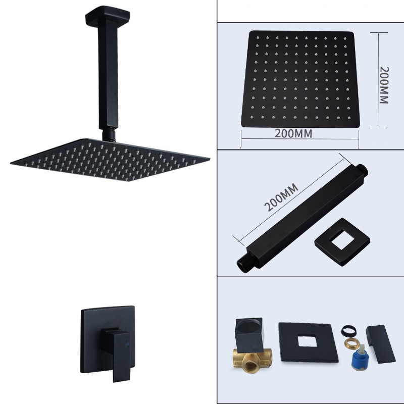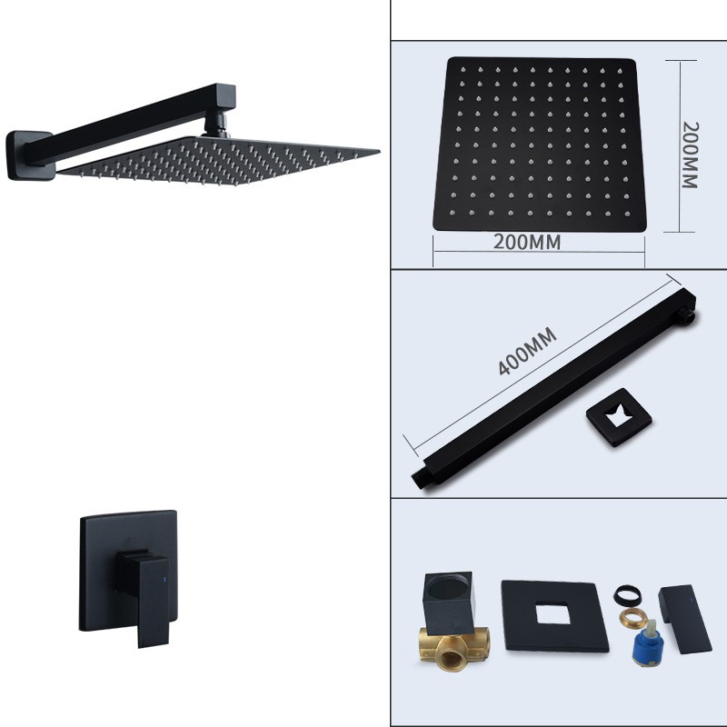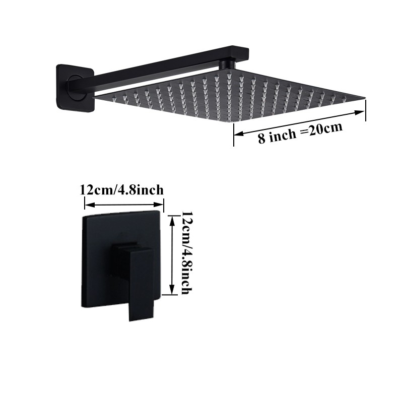 8 inch Matte Black Shower Faucet Set Bathroom Rainfall Shower System Stainless Steel Metal Showerhead Trim Kit Mixer Valve On/Off Switch&Water Flow Control Wall Mounted/Ceiling