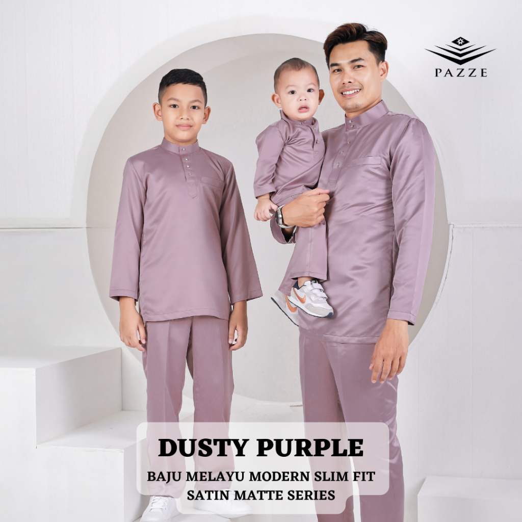 [Satin/Nikah] Pazze Baju Melayu Modern Slim Fit Sedondon Series - PearlWhite/BabyBlue/Salmon/DustyPurple/OffWhite/Cream